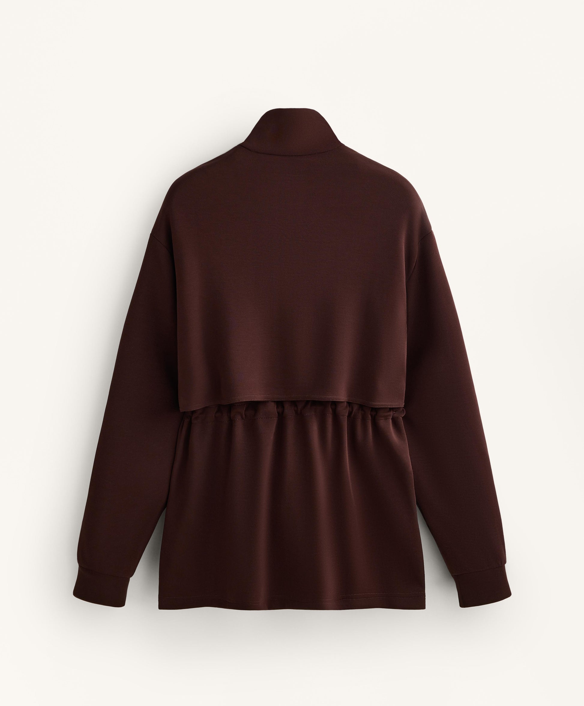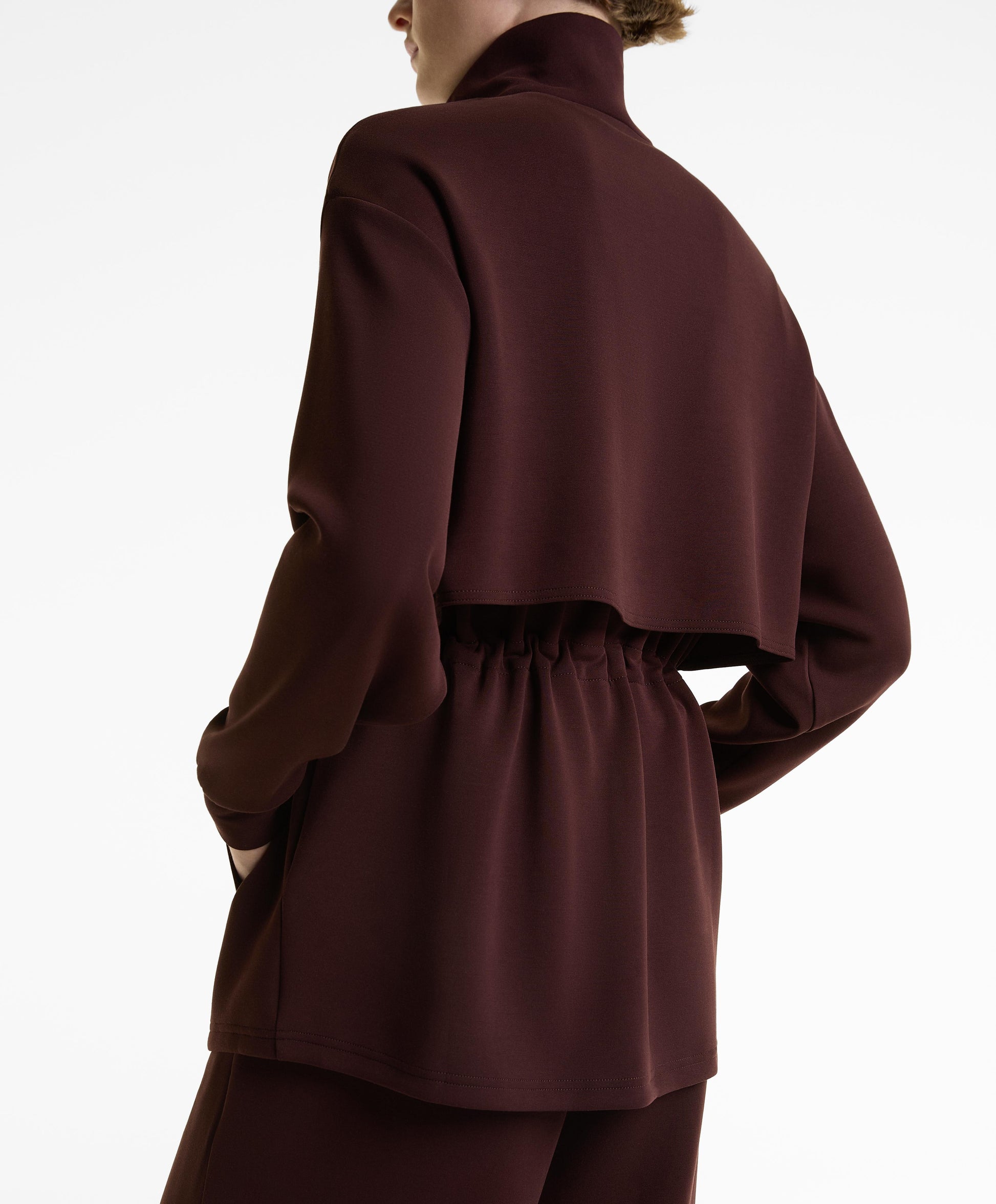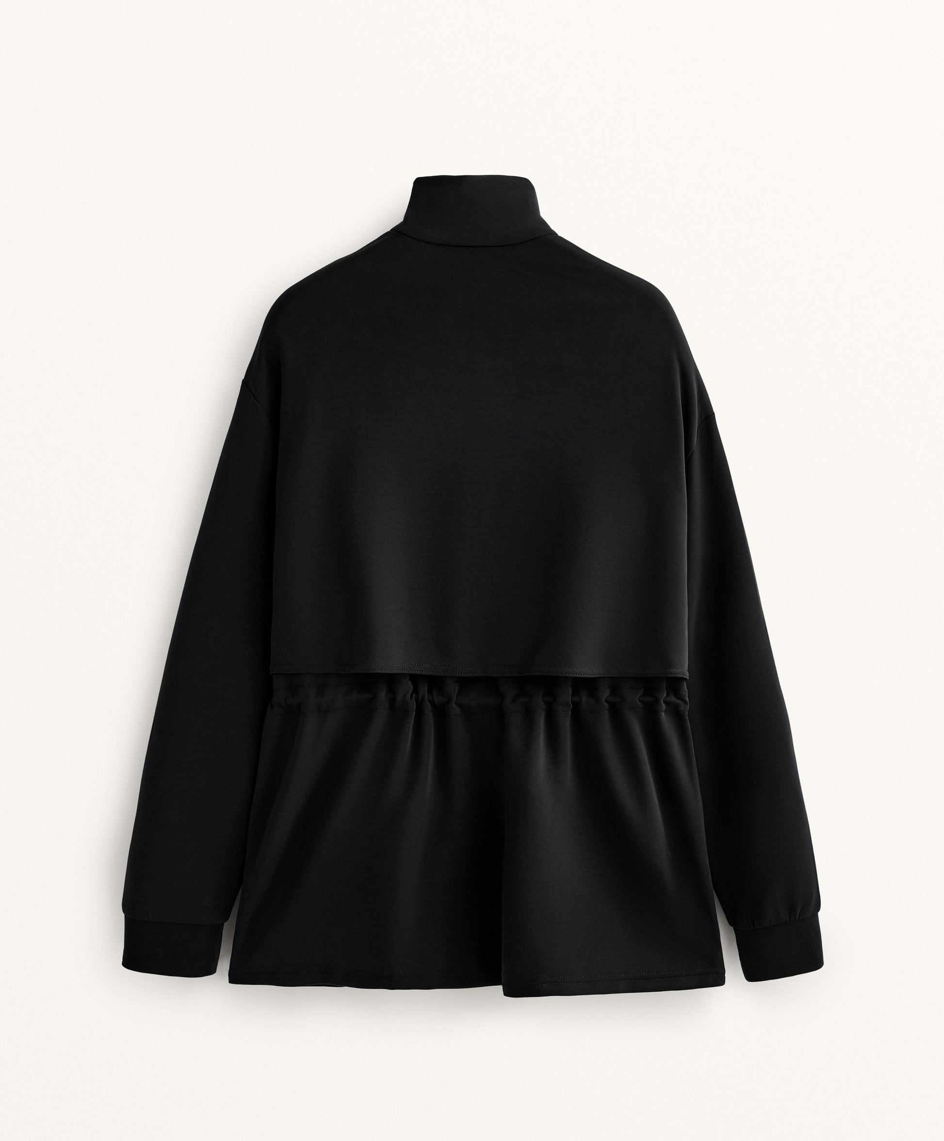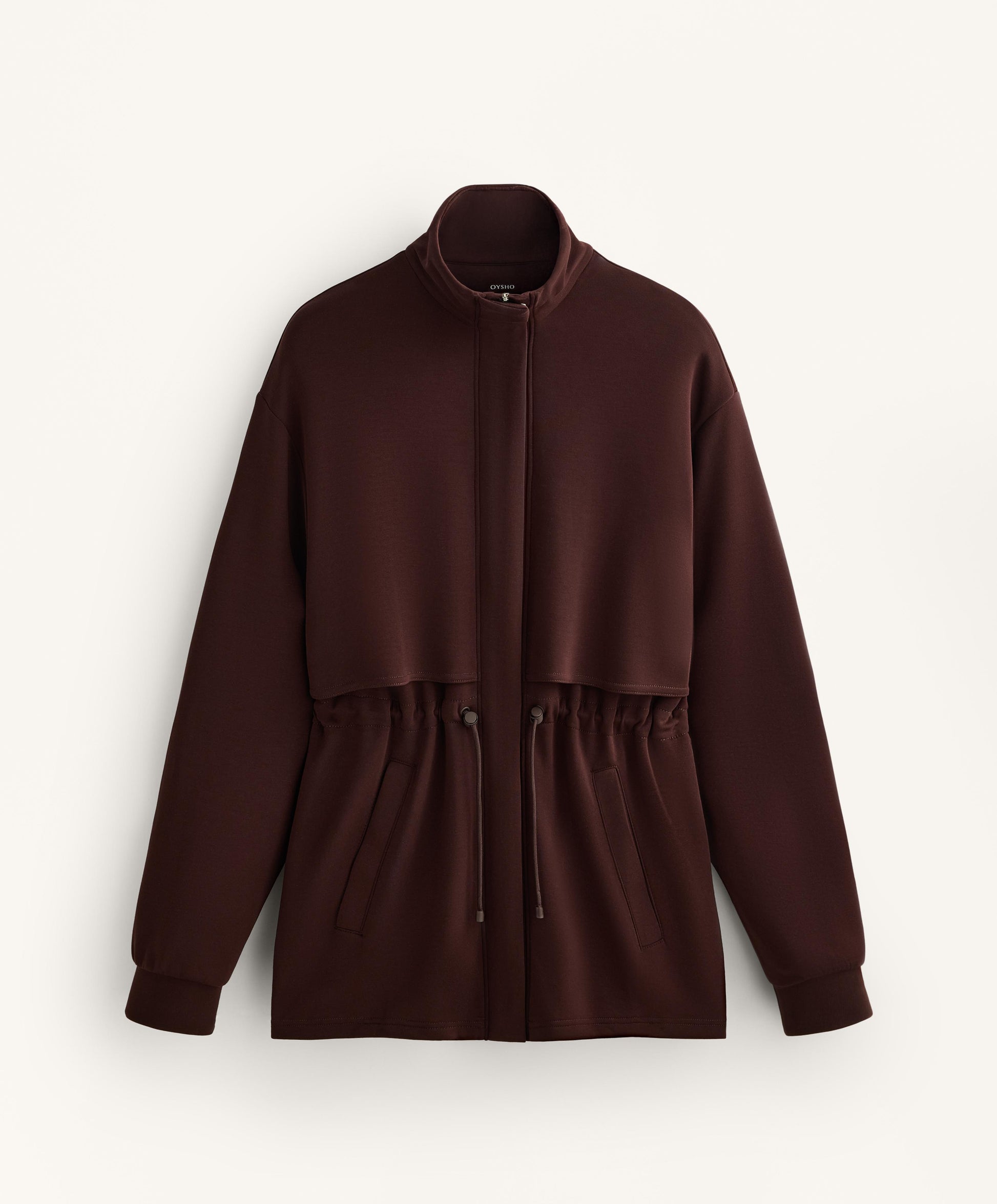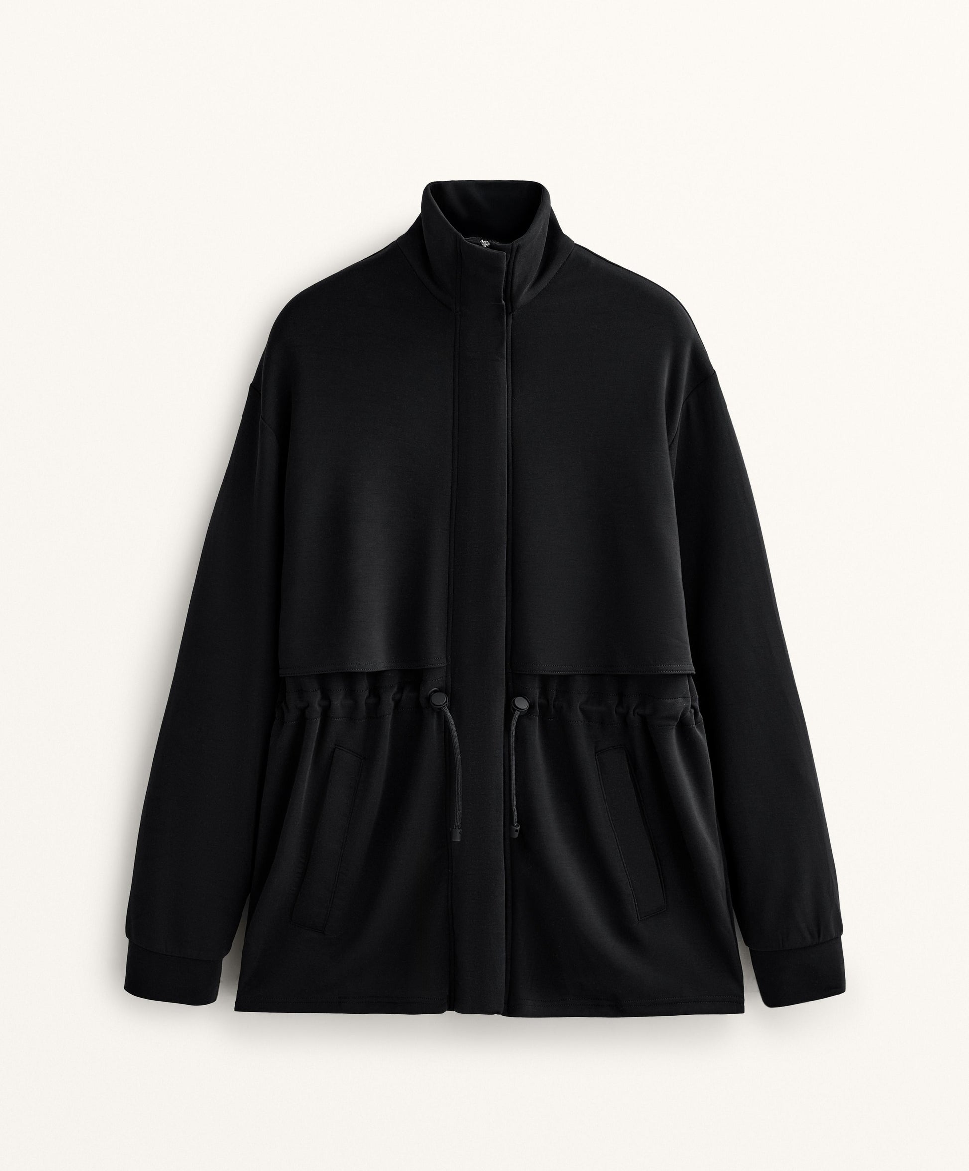 Ref. 3796/791/796 Long jacket with a high neck and front zip and button fastening. Adjustable drawstring waist. Featuring front pockets. Breathable fabric made with modal, with a soft feel.Materials and care instructions