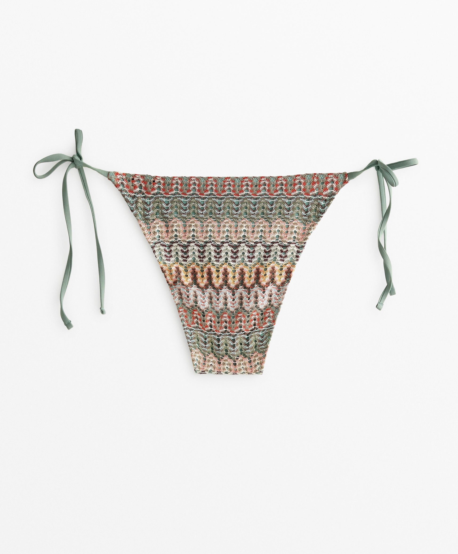 Ref. 0720/394/586 Medium-coverage bikini briefs with tie fastening at the sides. Crochet fabric.Materials and care instructions