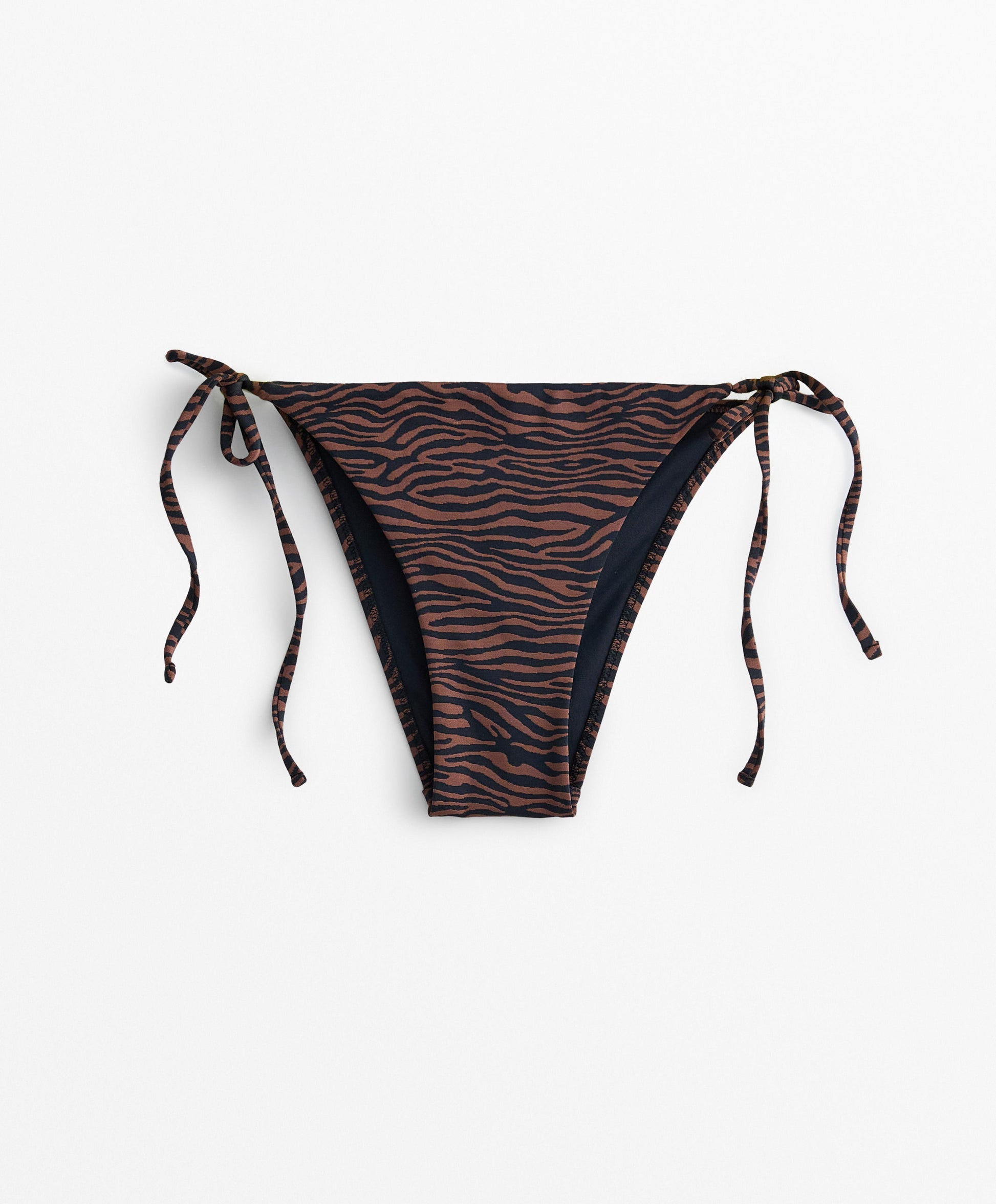 Ref. 0720/376/536 Medium-coverage bikini briefs with side ties and beading detail. Jacquard fabric.Materials and care instructions