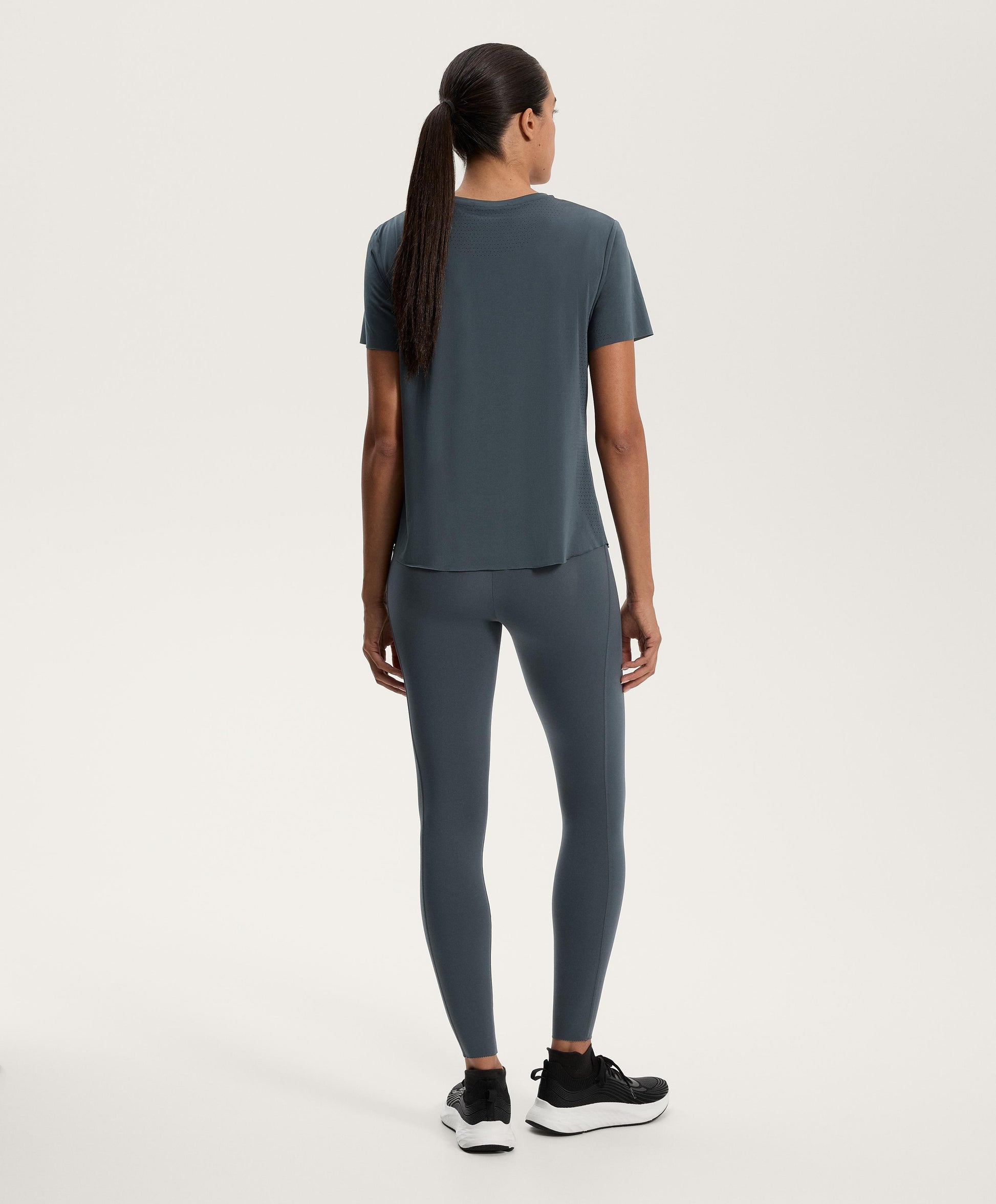 Ref. 6632/455/321 Short-sleeved fitted T-shirt with high neck made from technical fabric. Perforated fabric at the sides for extra breathability.Materials and care instructions