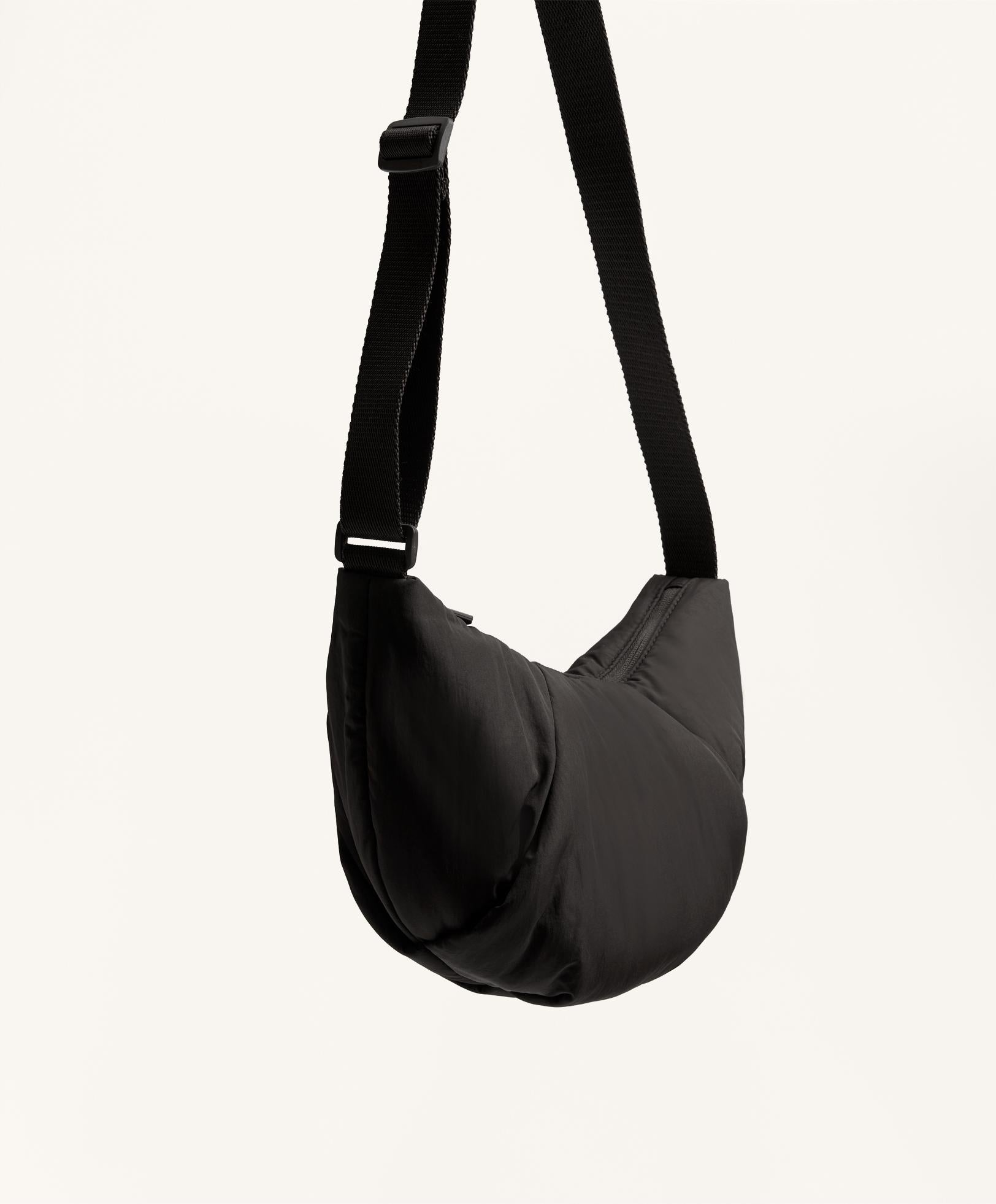 Ref. 4151/380/135 Quilted fabric crossbody bag with long adjustable strap. Zip fastening. Dimensions: 34x22x10cm.Materials and care instructions