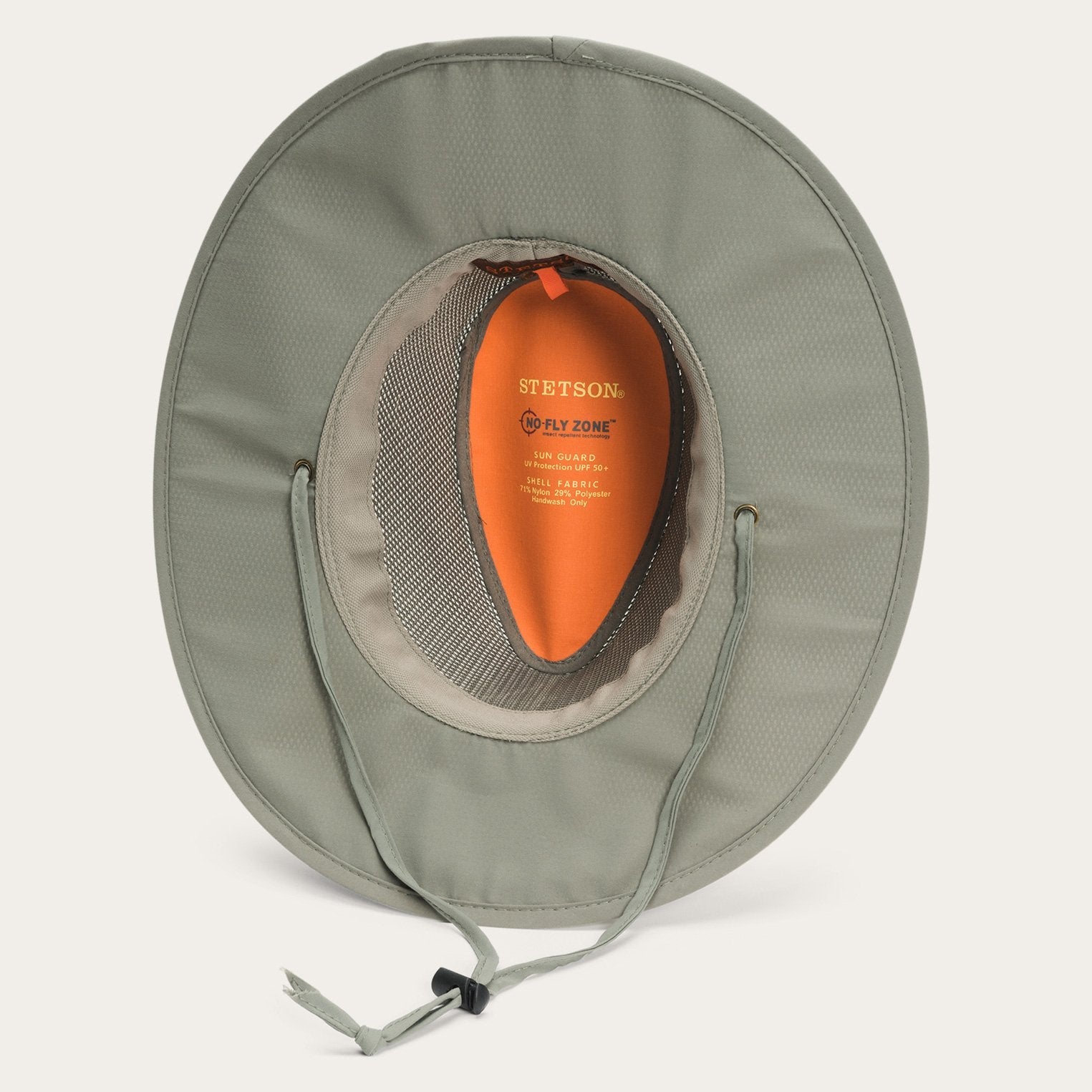 The No Fly Zone Mesh Montana Hat is constructed of nylon & polyester and features bug repellent properties of patented No Fly Zone technology. This style features a sun protective brim and chin cord offering ultimate protection from outdoor elements.