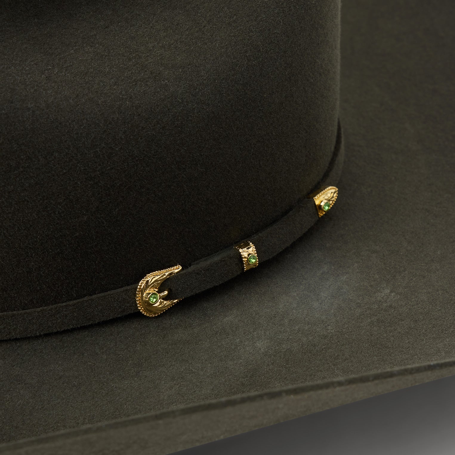 The Munford 6X combines classic western style and legendary quality in one timeless package. It's crafted from our proprietary 6X quality fur felt, which is prized for its durability and elegant feel, and is touched by more than 100 sets of hands during production at our factory in Texas, resulting in a hat that is designed and built to stand the test of time. It has a 4 ?" medium cattleman crown with a 4 ?" medium curve brim and features a matching self-felt hatband with three-piece engraved gold-tone buckle set with green inset stones. A handsewn genuine leather sweatband and full satin liner provide a time-tested fit and premium comfort.