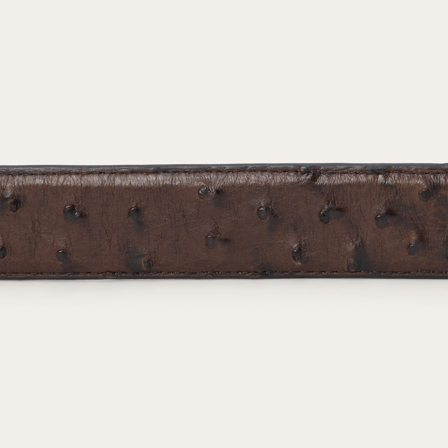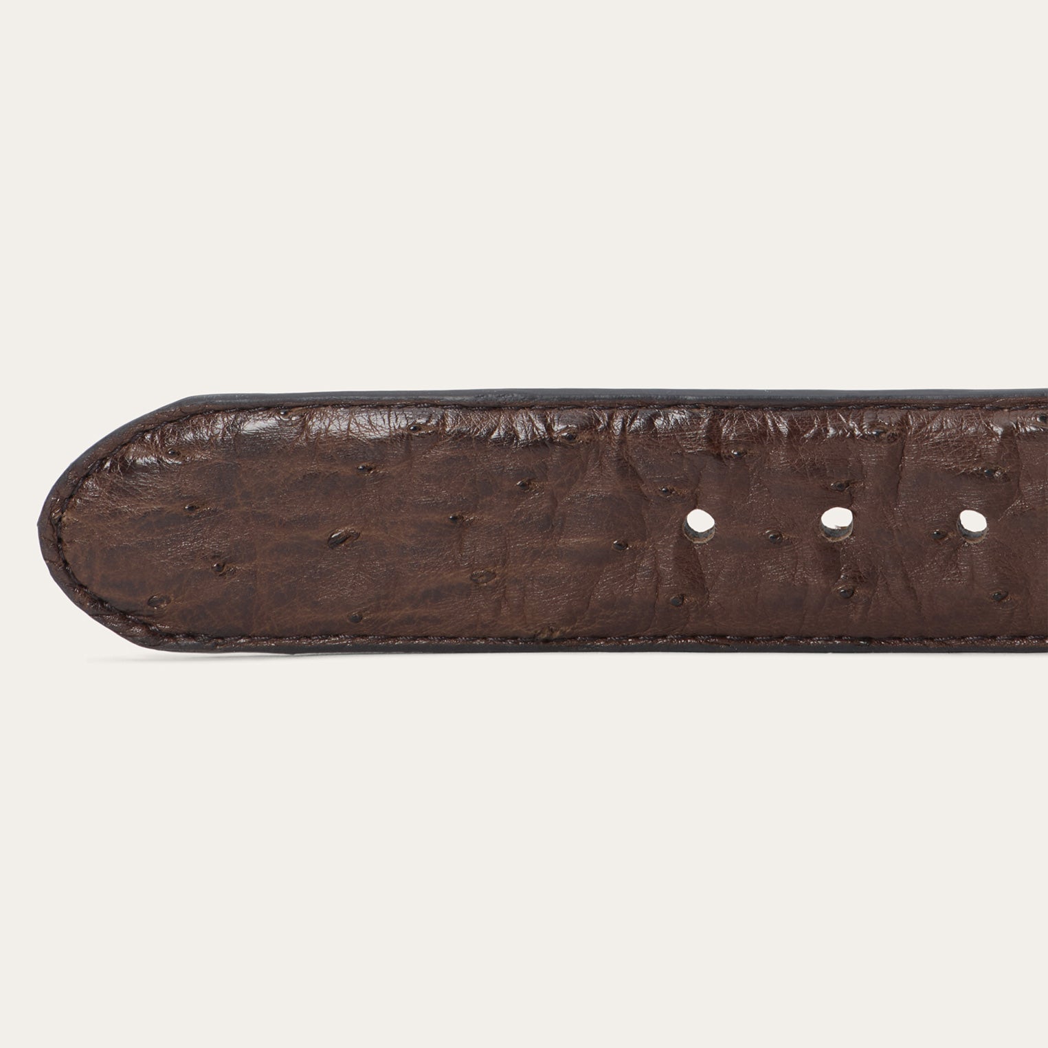 Crafted from genuine Ostrich leather, this belt has a 1 ?" wide black cowboy classic Ostrich leather strap with western tabs. It features seven holes on the point end to ensure a proper fit for all body types and is finished with a two-tone It buckle. Combining timeless western style with statement-making luxury materials, each of our exotic belts embodies our legendary commitment to quality and attention to detail.