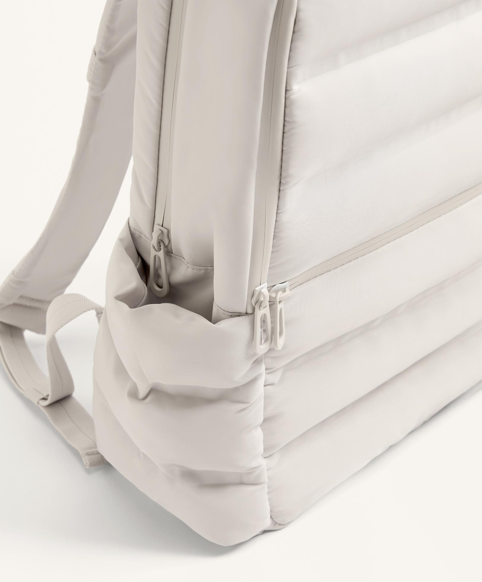 Ref. 4109/680/002 Padded backpack with two main zip-up compartments. One of them is suitable for laptops up to 16 inches. It has a carry handle and two adjustable shoulder straps, as well as a support strap for attaching to a suitcase. It has two side pockets and one pocket on the front. Measurements: 38x44x13cm. Capacity: 22L. Suitable for carrying in the aeroplane cabin, but we recommend checking with each airline.Materials and care instructions