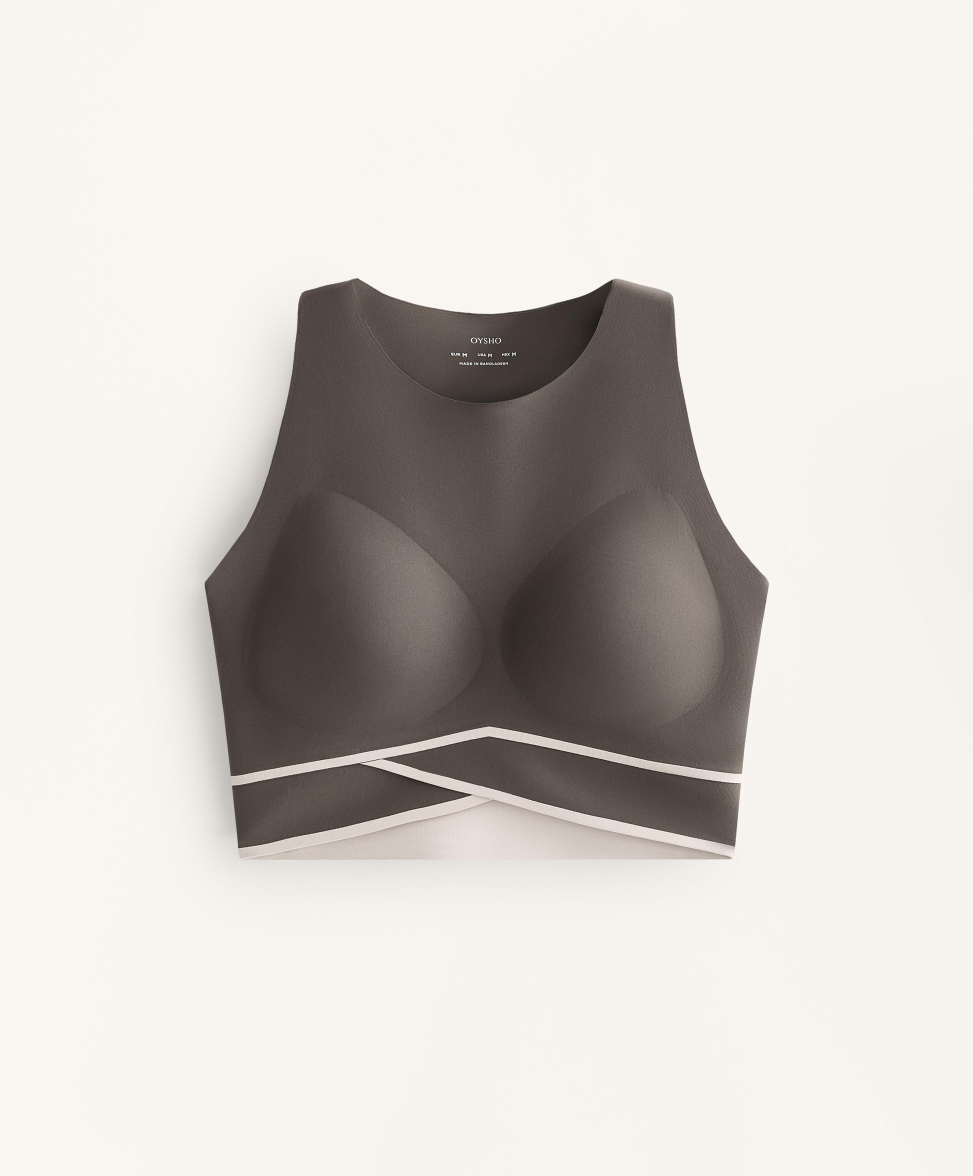 Ref. 0043/822/715 Tank top with removable light filling cups. Contrasting crossover detail on the lower section. Breathable, high-resistance, quick drying fabric.Materials and care instructions