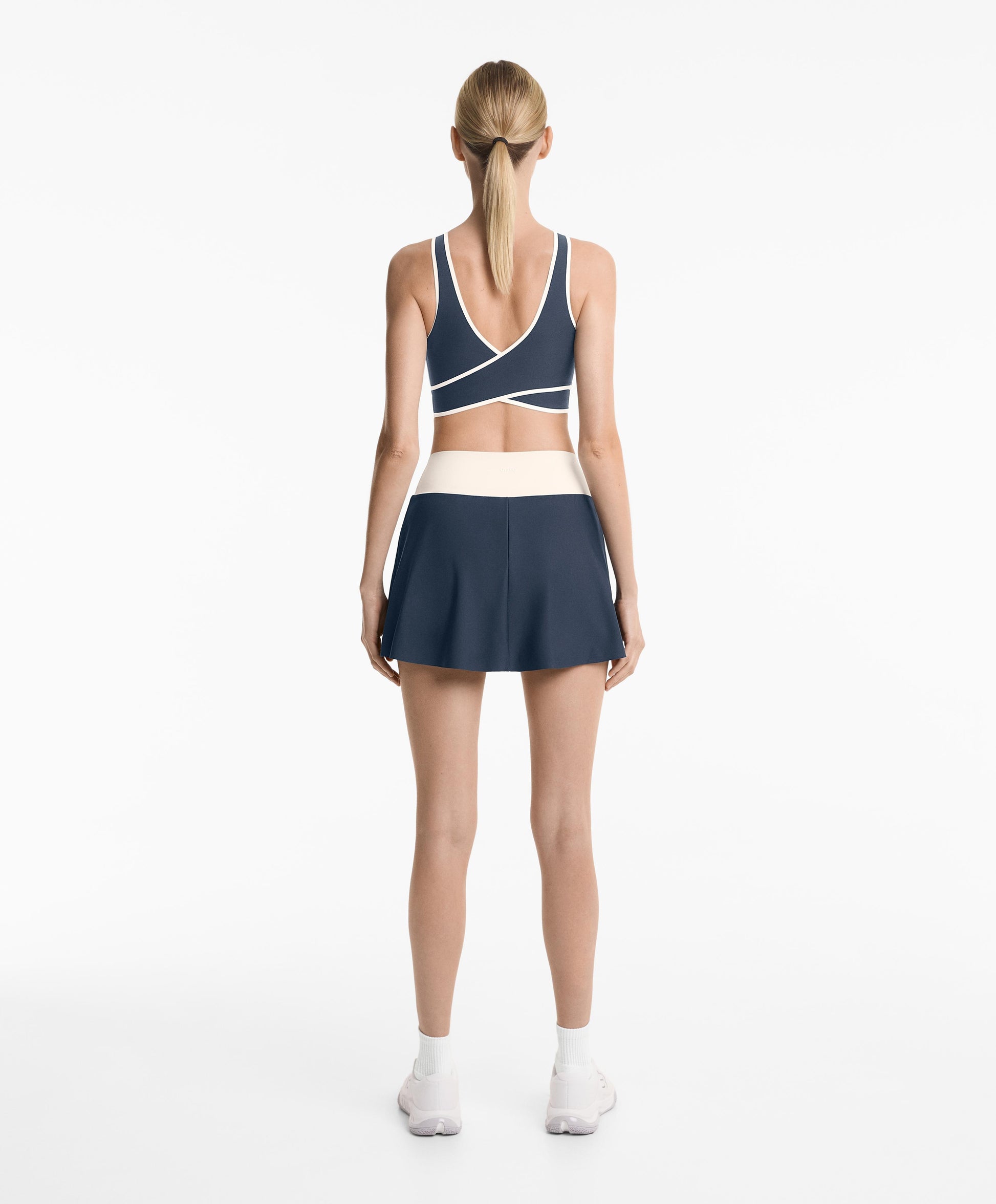 Ref. 0505/232/397 Perfect-Adapt short skirt with inner shorts. Crossover V-cut waistband. Breathable and high-resistance, quick drying fabric.Materials and care instructions