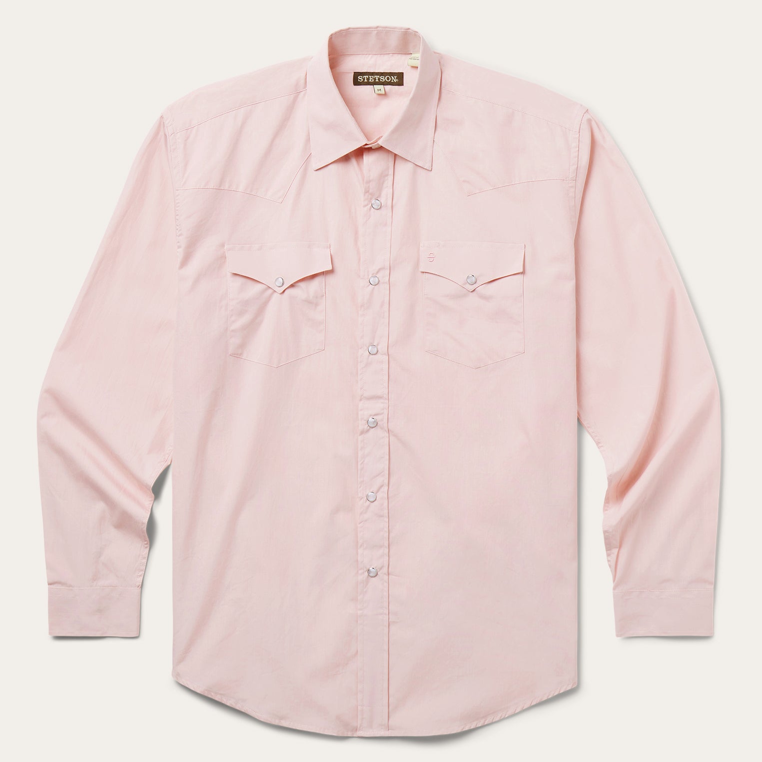 This classic snap-front Western shirt is crafted from cotton end-on-end oxford cloth, which has a smooth and crisp, lightweight feel similar to poplin. Made to get better with time and wear, it has two one-point snap-closure pockets, a spread collar, one-point front and back yokes, pearl logo snaps and subtle tonal embroidery on the left chest pocket and right cuff.