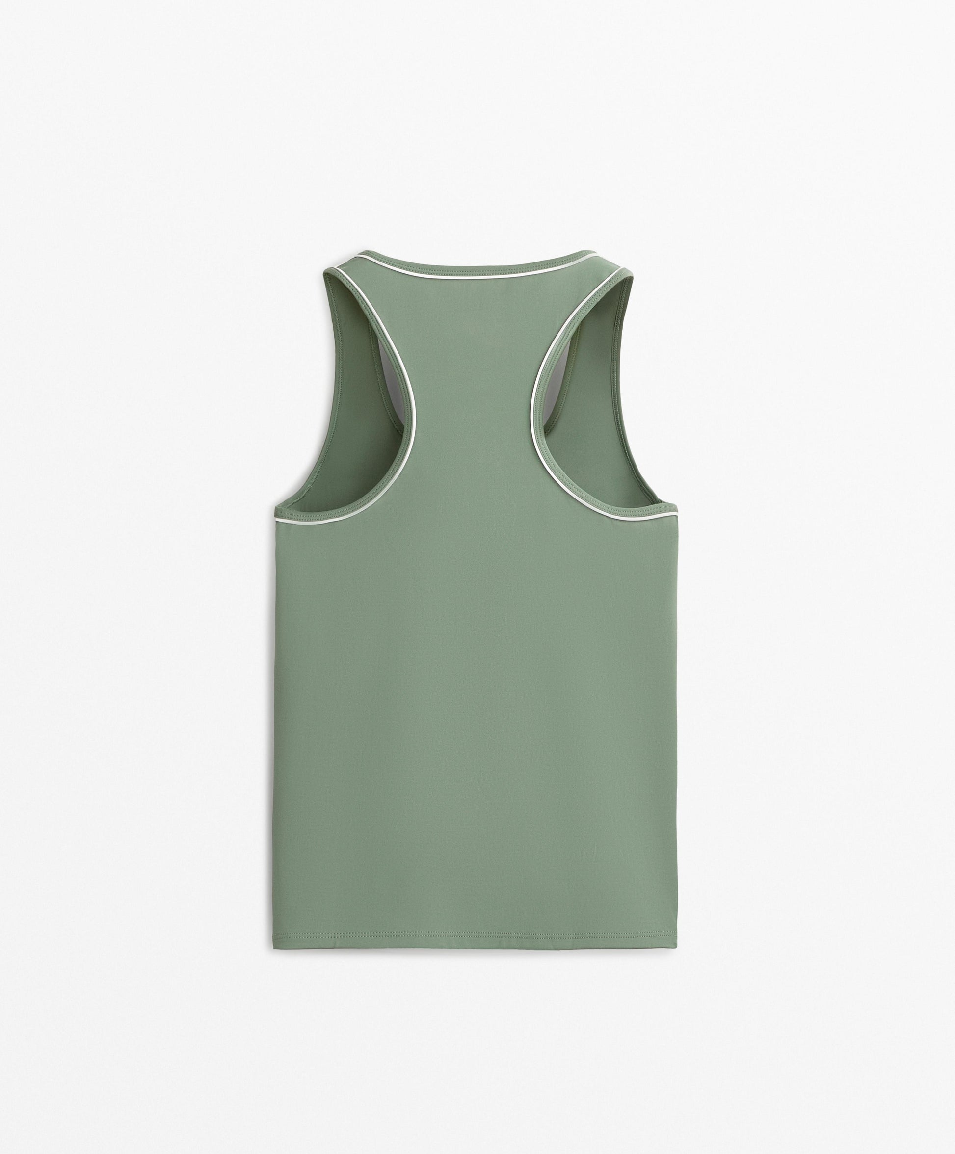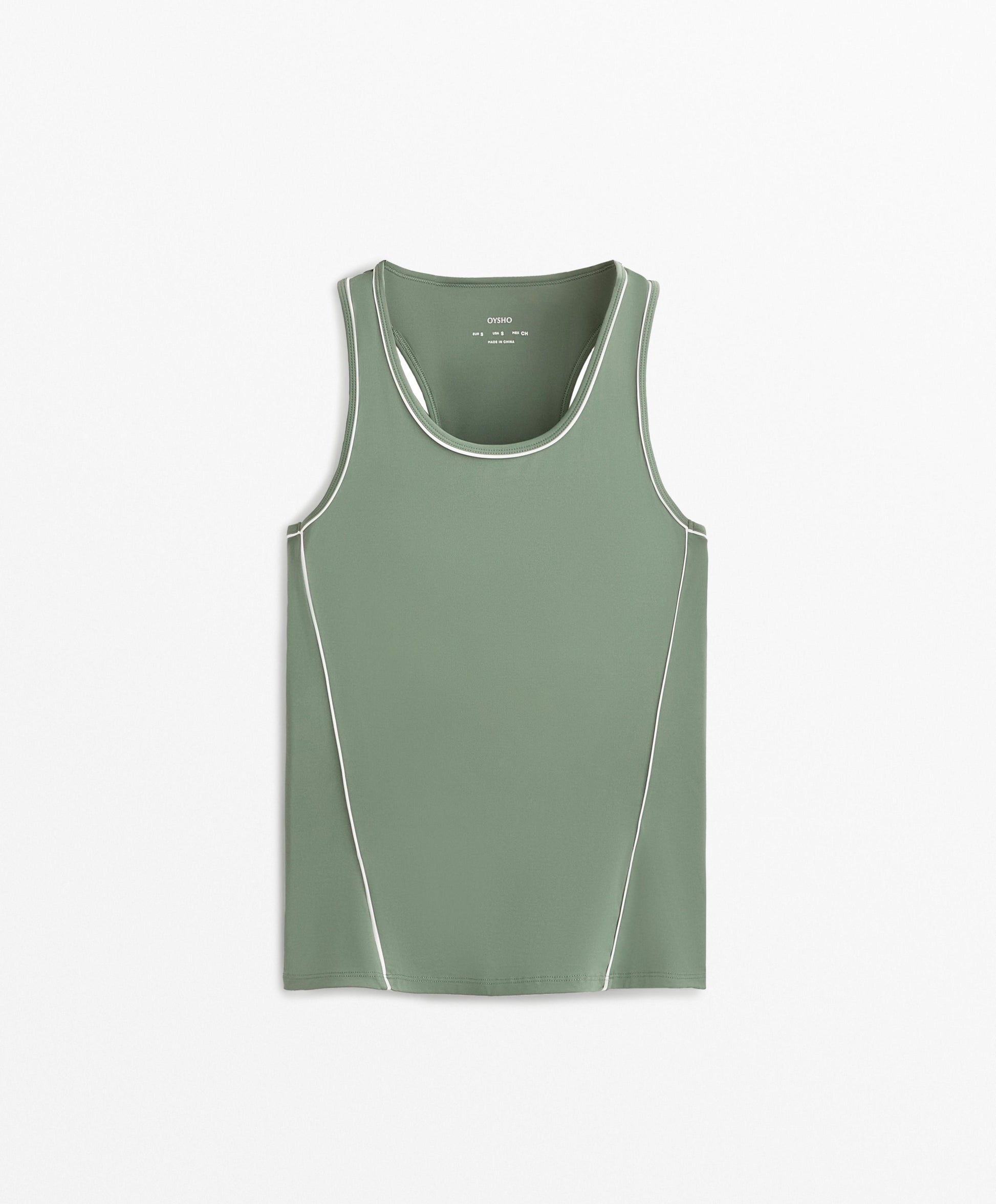 Ref. 0041/570/597 Piping detail sleeveless T-shirt. Breathable, high-resistance, quick drying fabric.Materials and care instructions