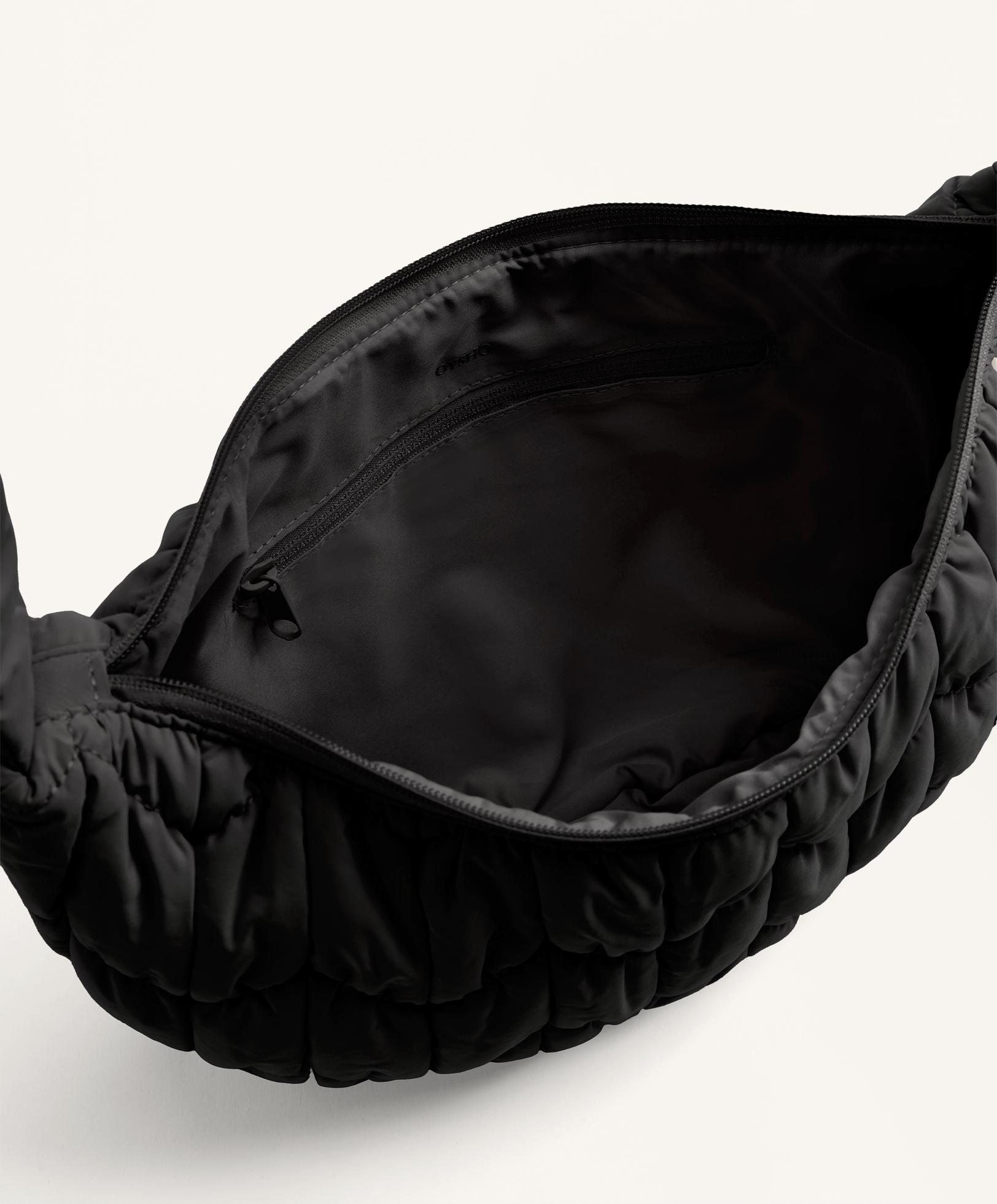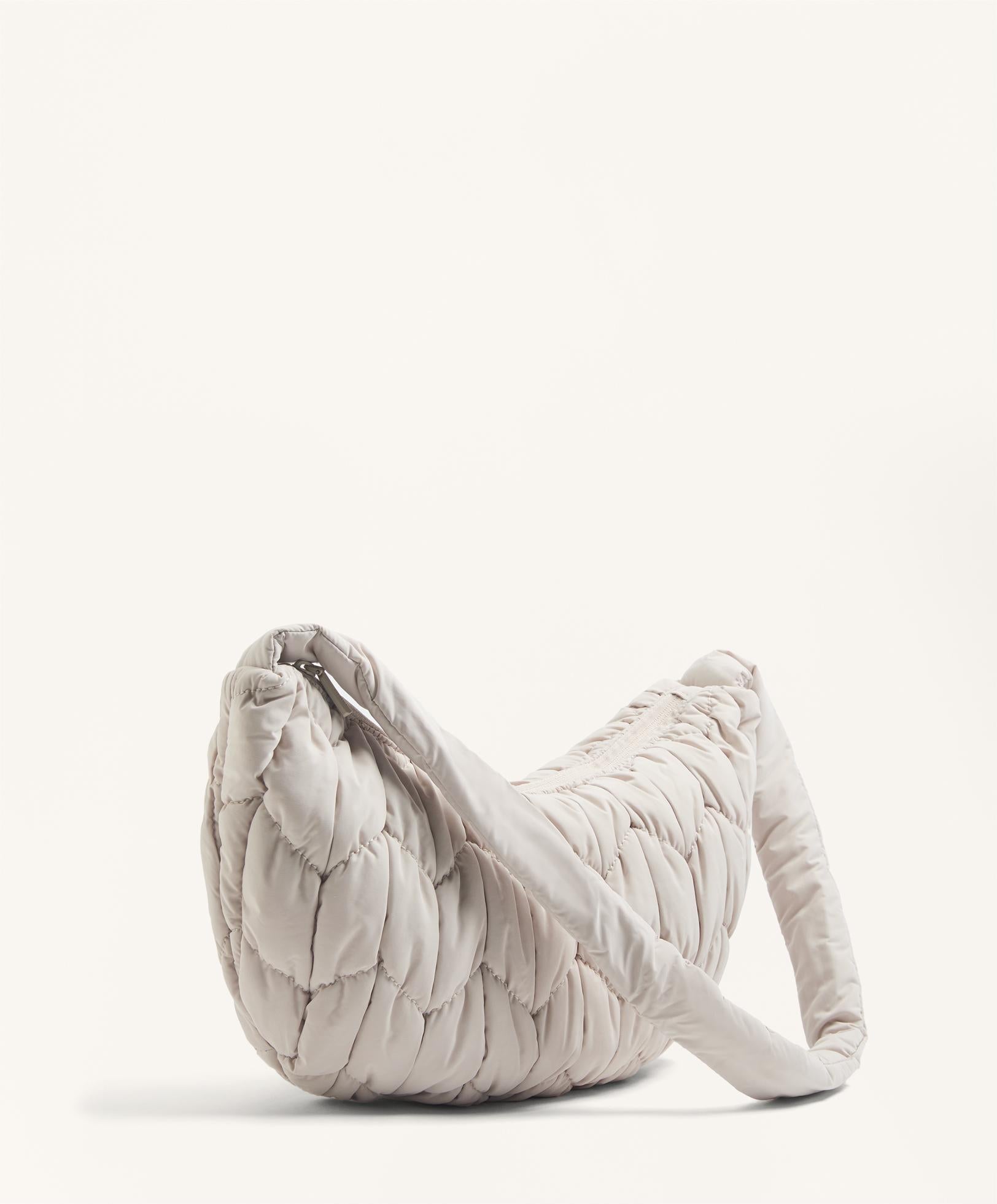 Ref. 4150/680/133 Quilted fabric crossbody bag with interior pocket. Zip closure. Measurements: 24x42x4cm. Handle length: 39cm.Materials and care instructions