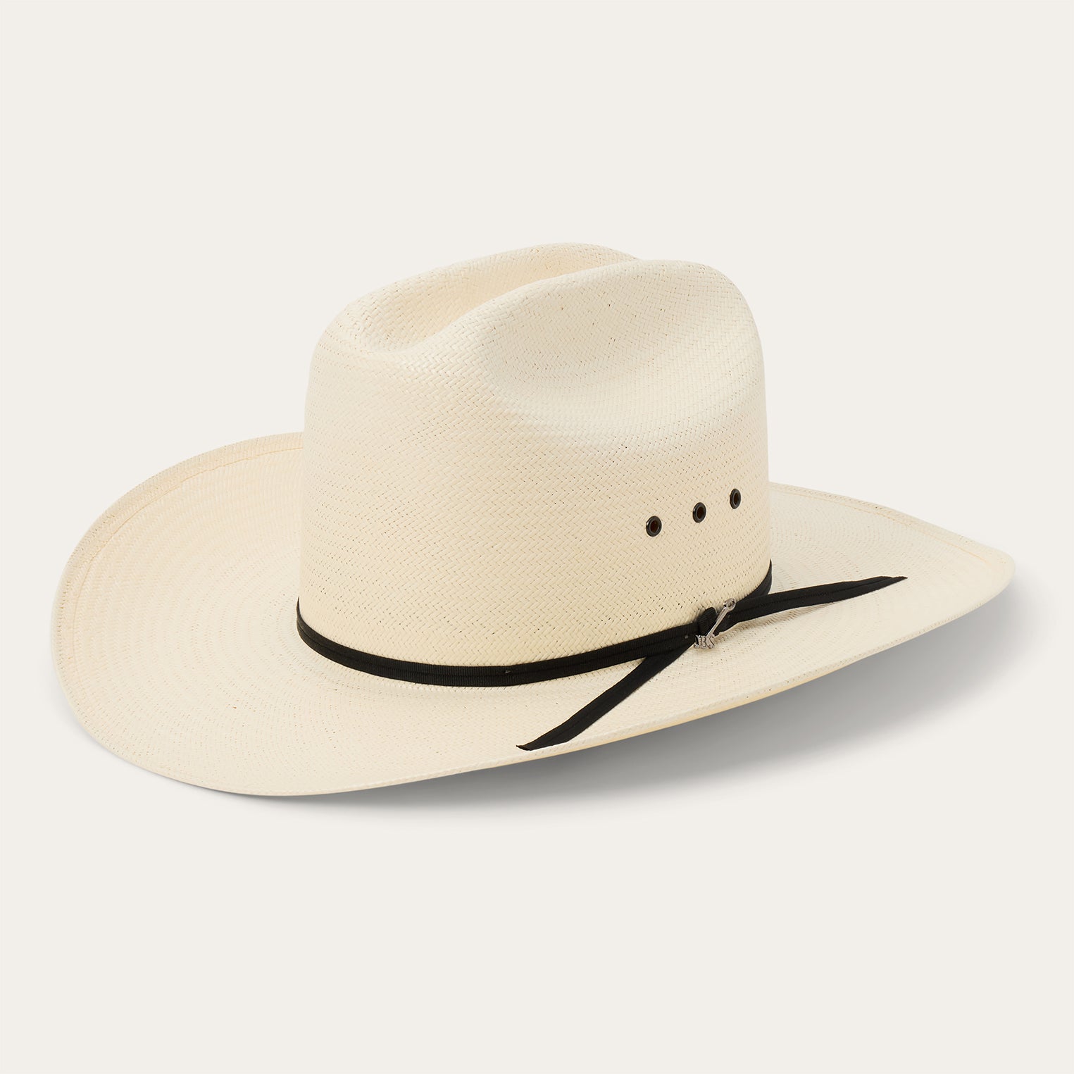 Handwoven one strand at a time in the U.S.A. from 10X quality shantung straw, the Rancher combines legendary craftsmanship with a heritage western profile that stands tall in the saddle. It has a 5" cattleman crown, 4" brim and a 2-ply grosgrain ribbon hatband with JBS branding iron pin-a nod to our founder John B. It, whose trailblazing legacy lives on in everything we make. Eyelets in the crown provide extra circulation and a genuine leather sweatband ensures a time-tested, comfortable fit.