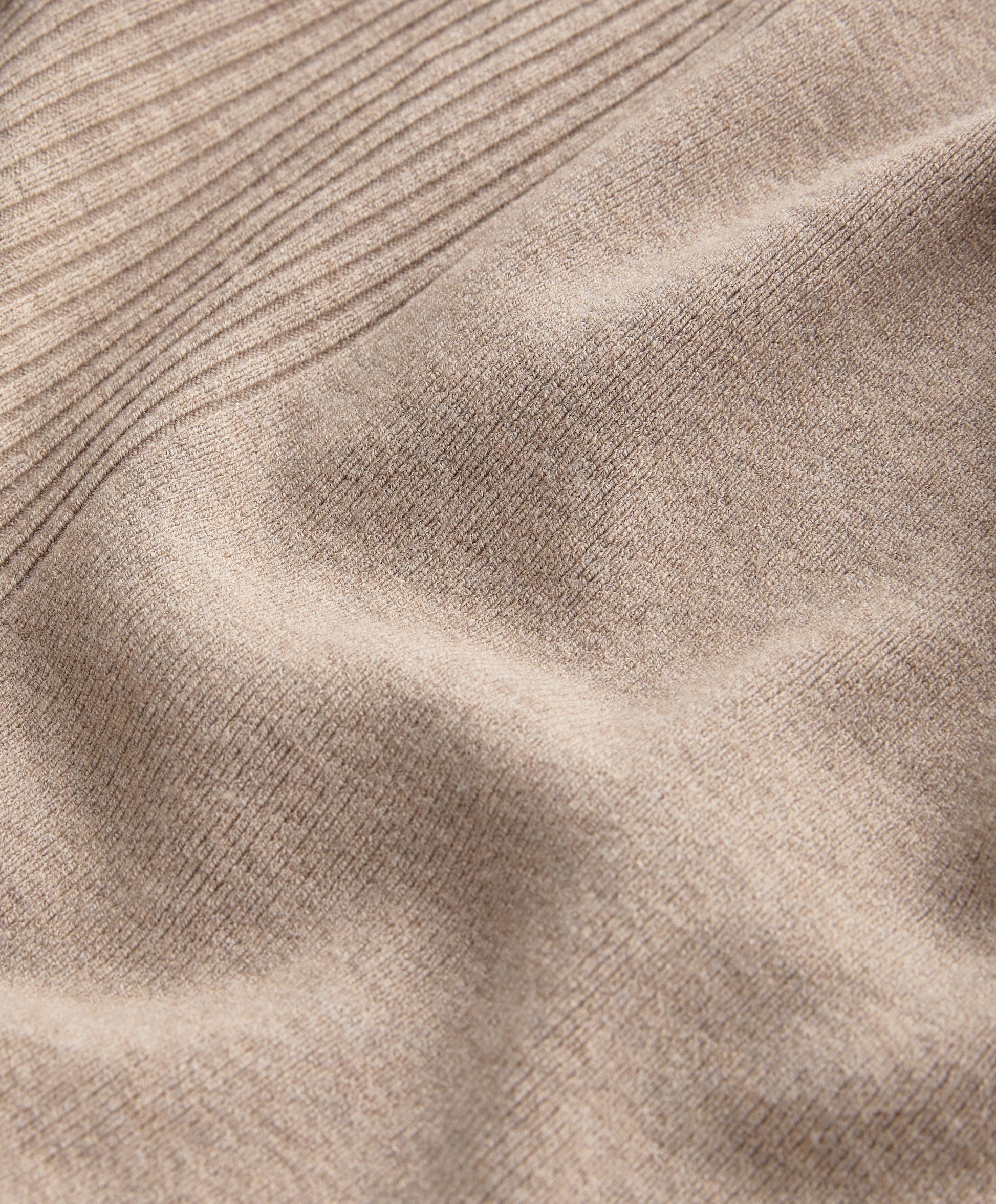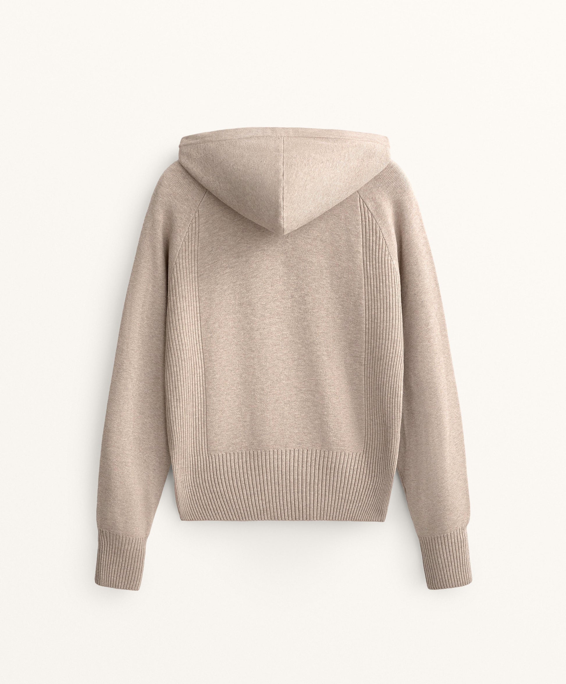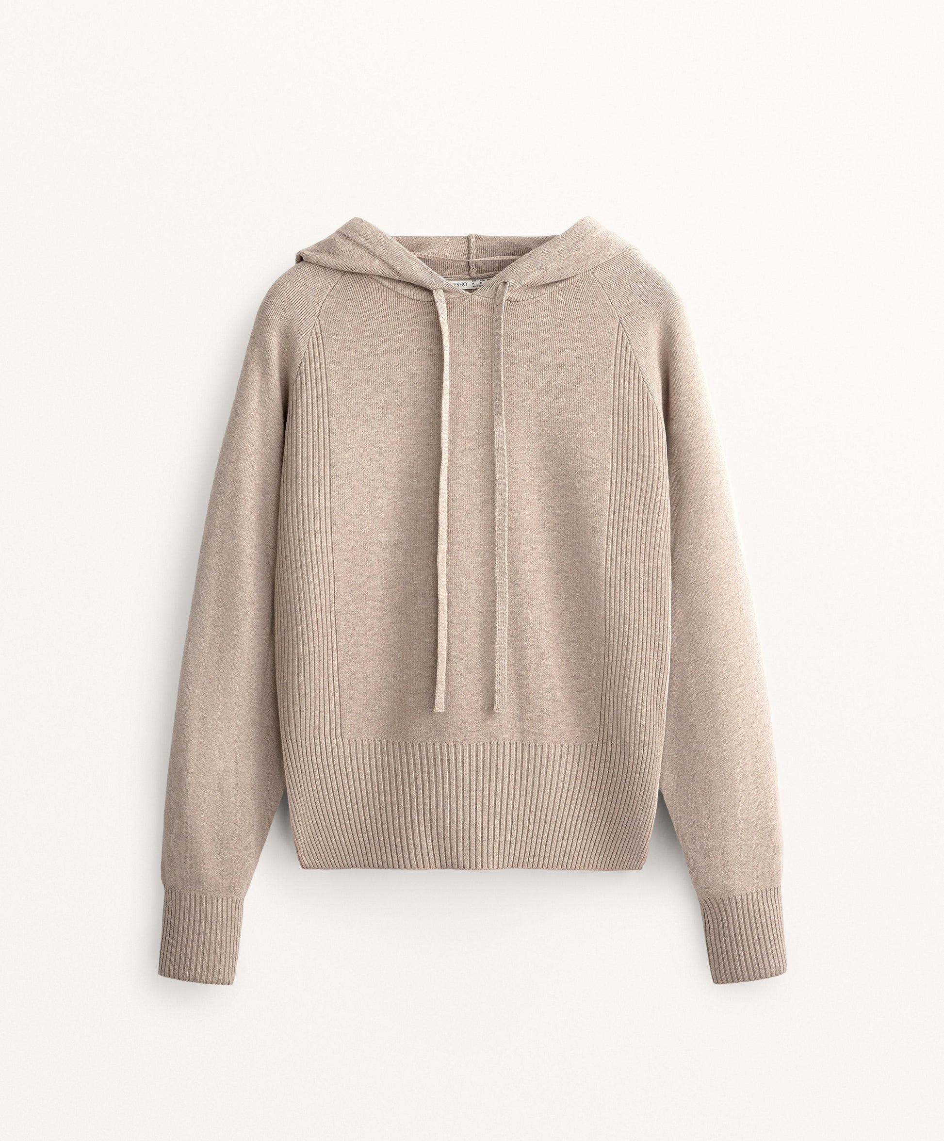 Ref. 3783/880/758 Knit jumper with drawstring-adjustable hood and fitted waist. Rib detailing on the sides, cuffs and waist.Materials and care instructions