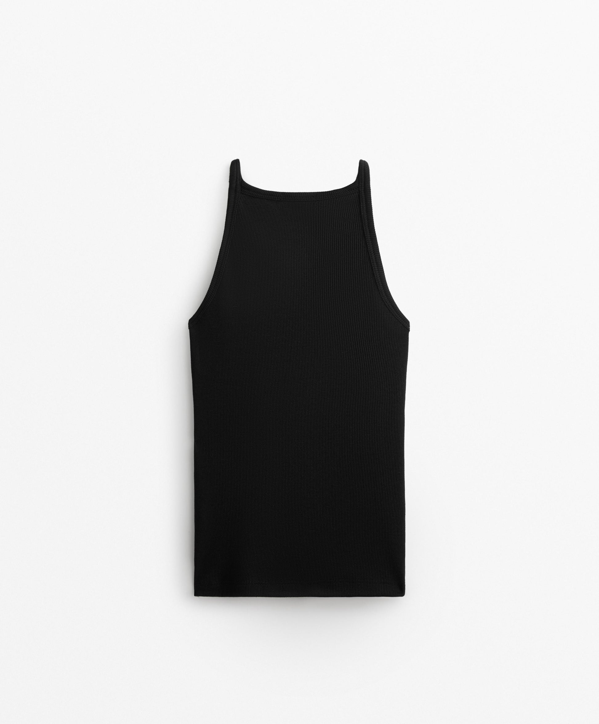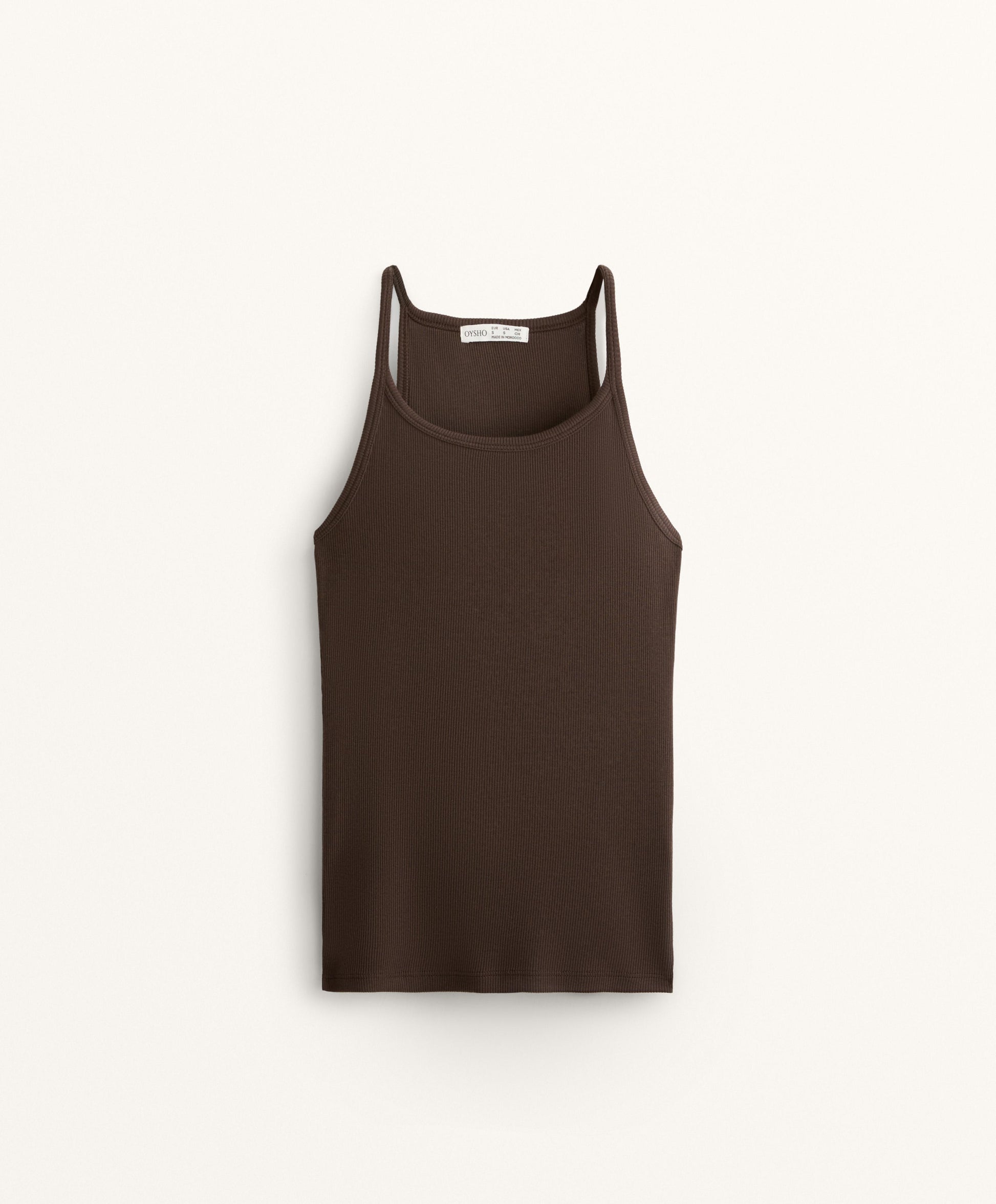 Ref. 0607/662/716 Fitted vest top with thin straps and a round neck. Rib knit fabric made with cotton and modal.Materials and care instructions