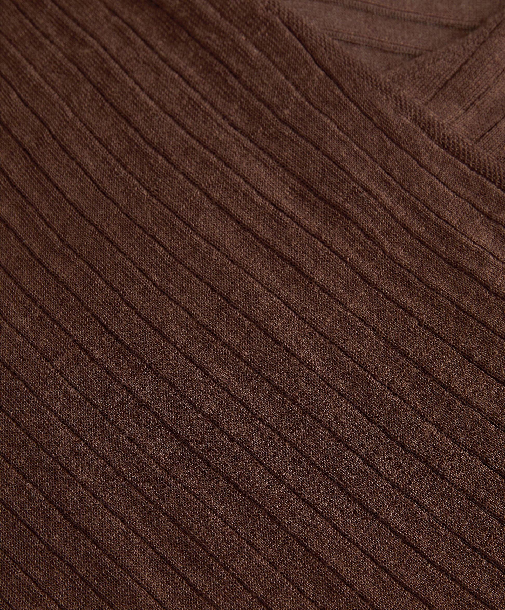 Ref. 3169/695/771 Long-sleeve jumper with crossover front. Rib fabric in semi-sheer fine knit.Materials and care instructions