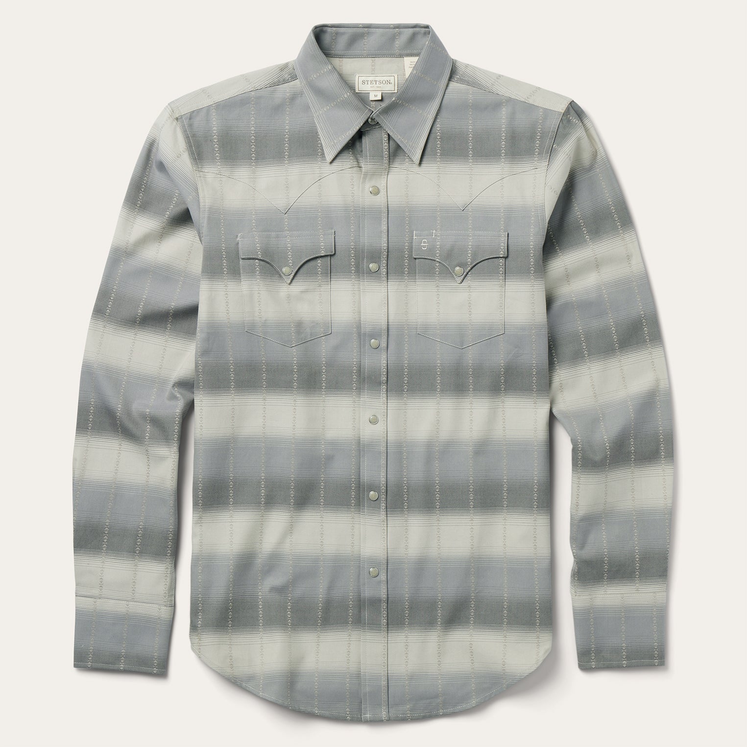 We set the standard for snap fronts. They're not just Western-inspired, they're imbued with a Western spirit. This modern fit shirt is crafted from rugged and durable 100% cotton twill that has been yarn-dyed for rich, lasting color and made to get better with age and wear. Featuring our exclusive serape dobby print, it has a one-point, ultra-deep curved back yoke, subtle "S" and "It" embroidery at the chest and right sleeve placket, a three-snap cuff and a classic snap front featuring opaque logo snaps.