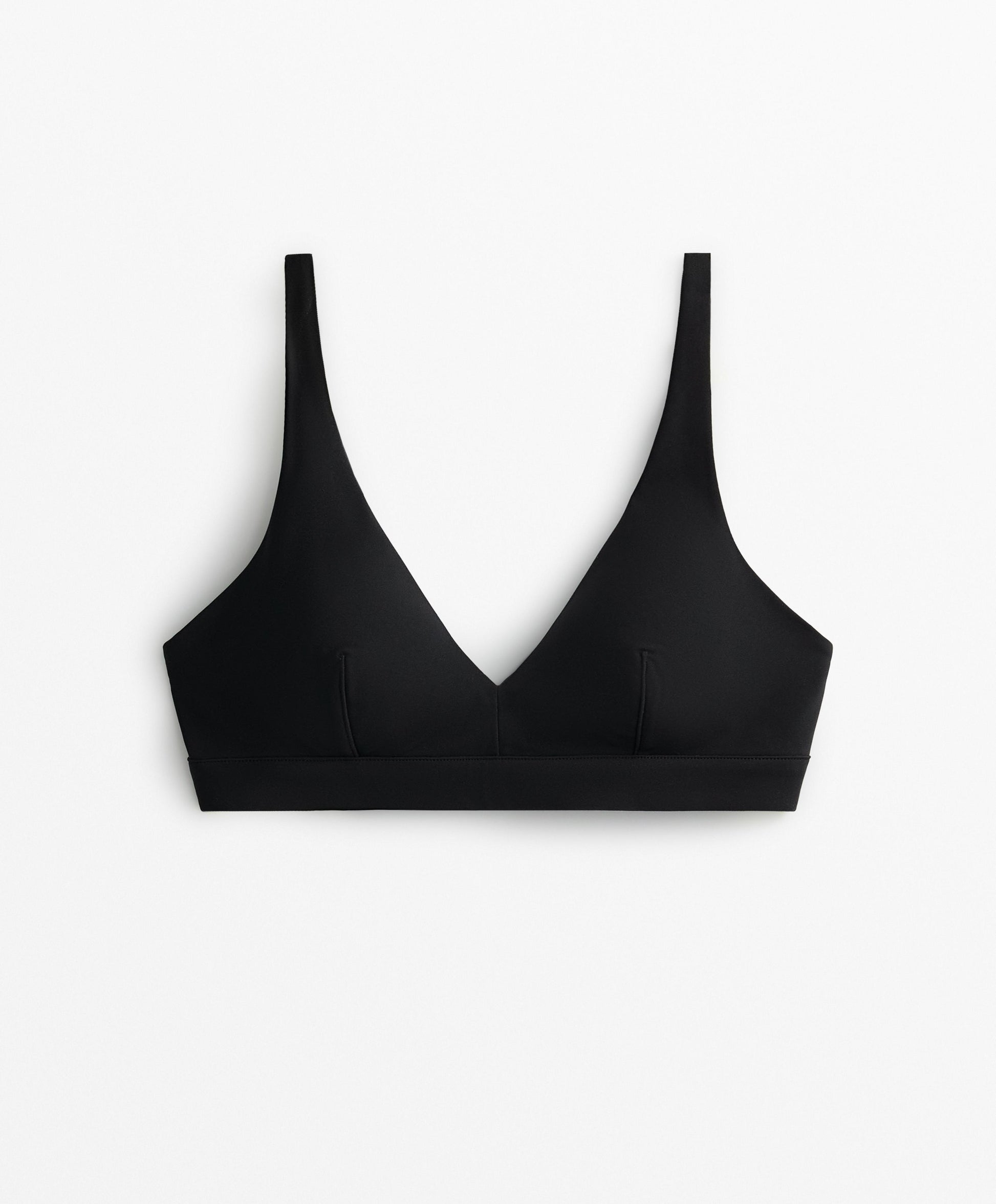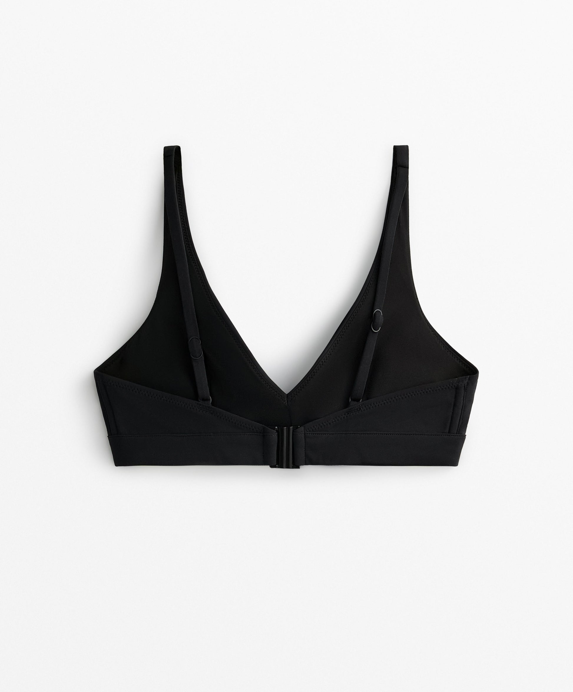 Ref. 0704/357/800 Plain halterneck bikini top. Removable foam cups, non-wired, with adjustable straps and back fastening. Shapewear fabric.Materials and care instructions