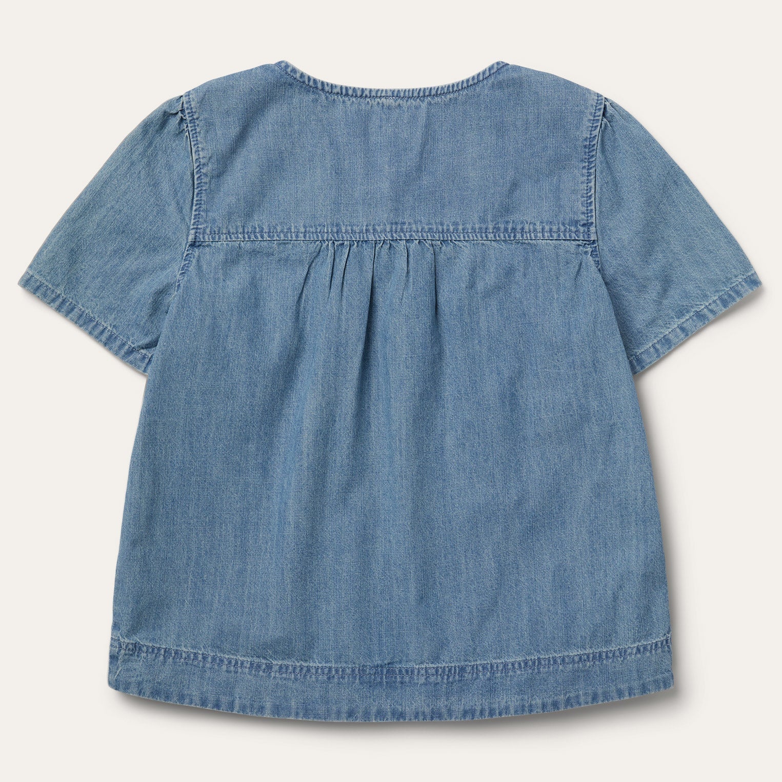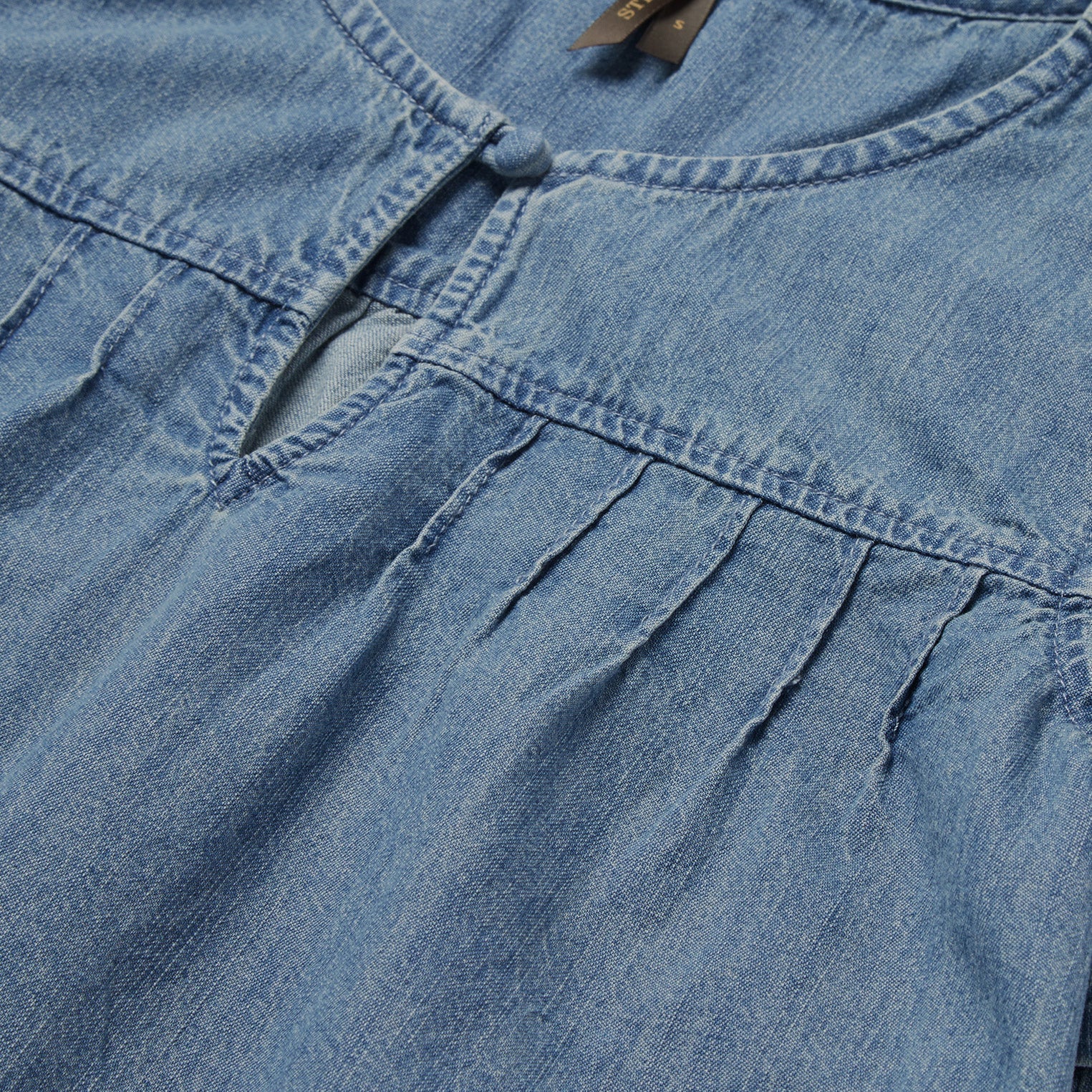 This soft, flowing top is crafted with lightweight cotton and finished with authentic details like pin tucks at the chest and gathered sleeves. The split-neck keyhole collar includes a hidden button closure. A versatile piece for the warmer months that can be paired with denim cutoffs, your favorite jeans, or a skirt.