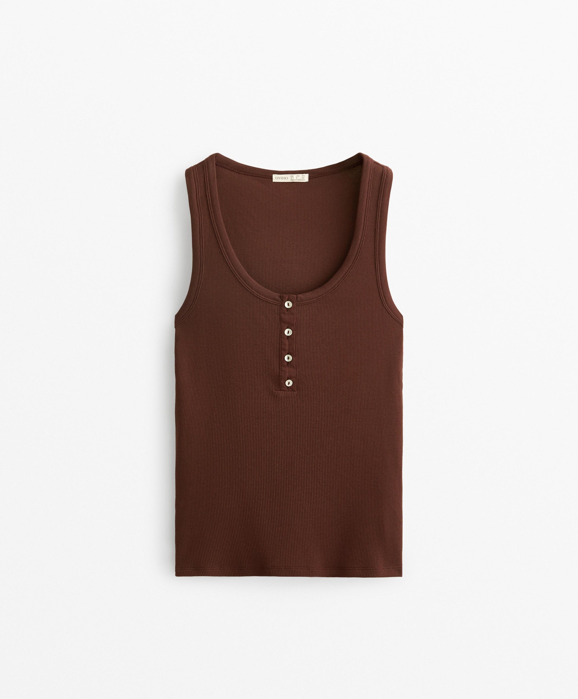 Ref. 6425/662/251 Sleeveless top with front buttons from the chest up. Rib fabric with cotton and modal.Materials and care instructions