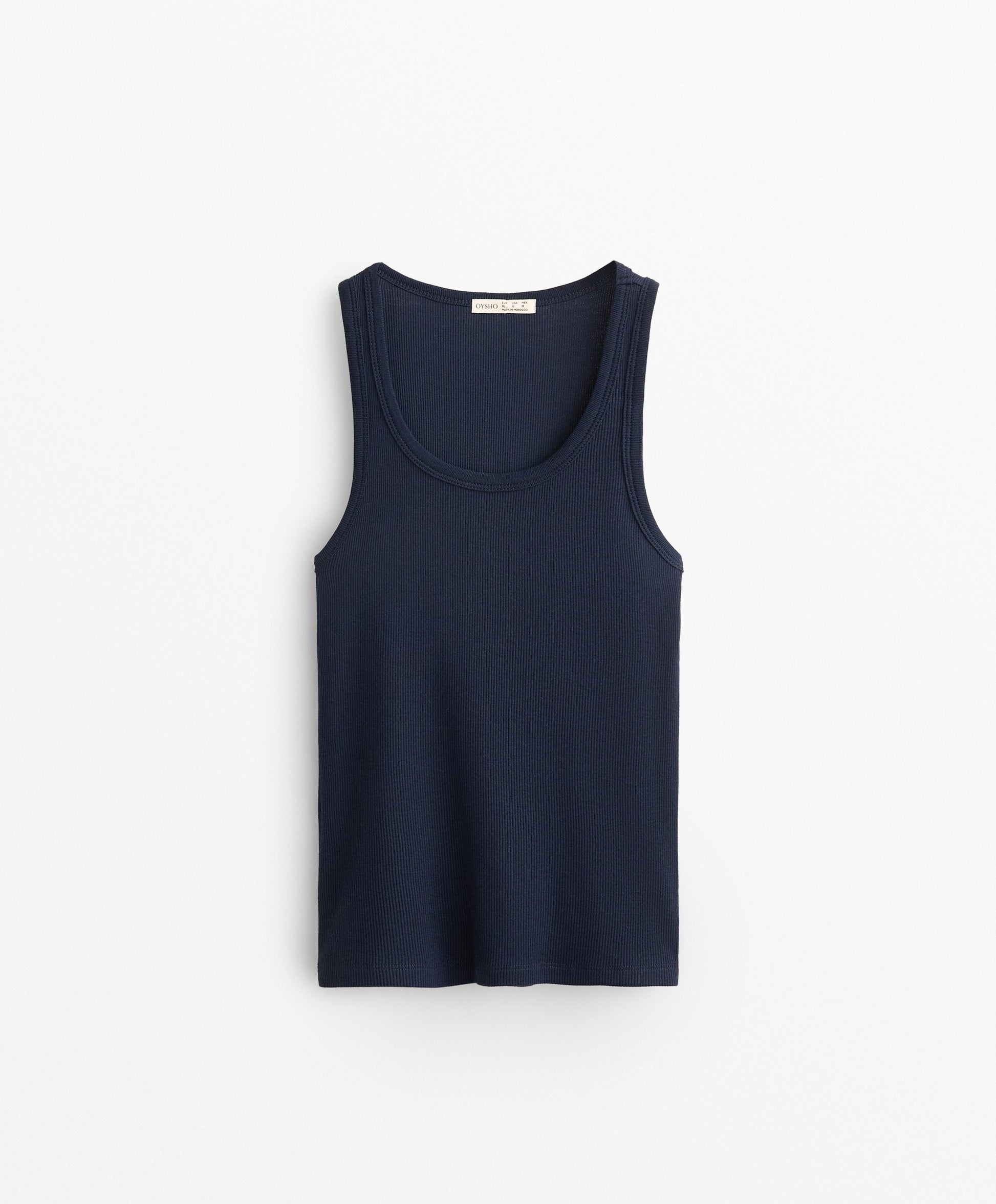 Ref. 6447/662/251 Sleeveless top with round neck and rib finish. Fabric made with modal and cotton.Materials and care instructions