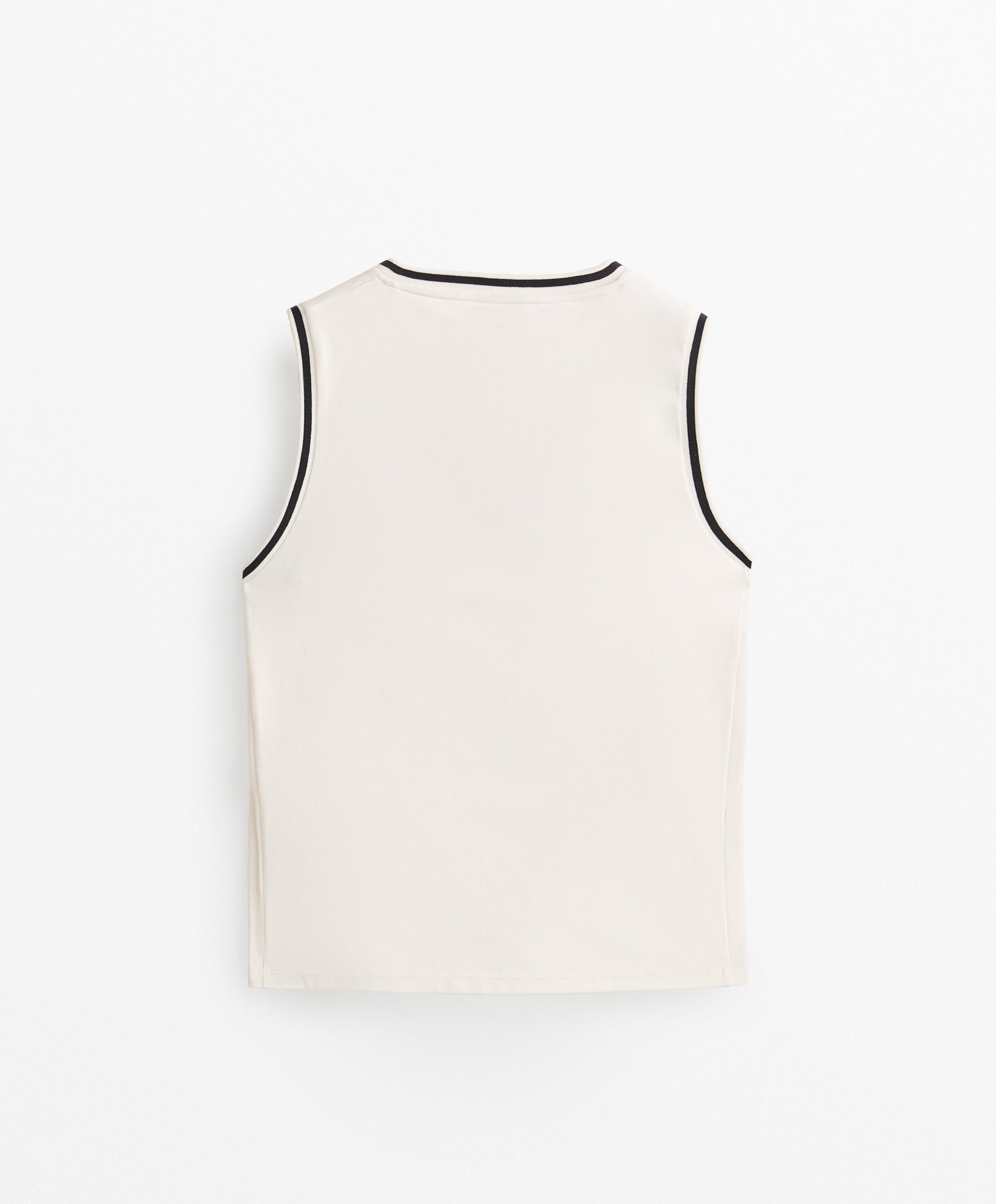 Ref. 0605/290/959 Sleeveless V-neck T-shirt. Contrasting ribbed trim detail. Breathable, quick-drying fabric.Materials and care instructions