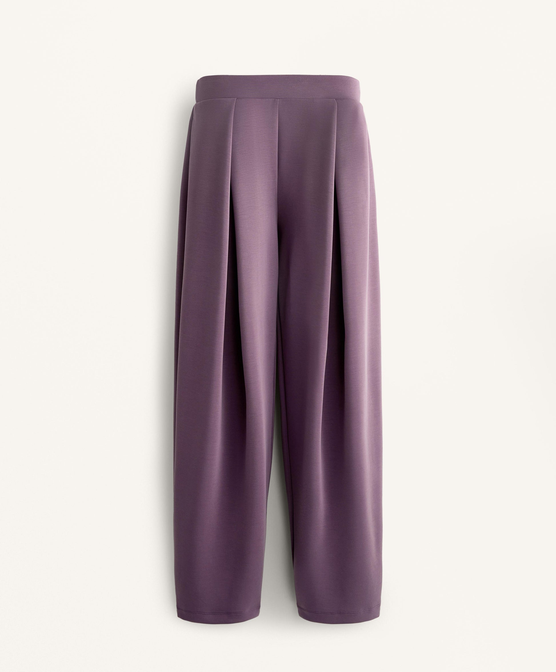 Ref. 3344/791/629 Cocoon-style, high-waisted long trousers with front pleat detail. Featuring an adjustable elasticated waistband and front pockets. Fabric crafted from modal with an extra-soft feel.Materials and care instructions