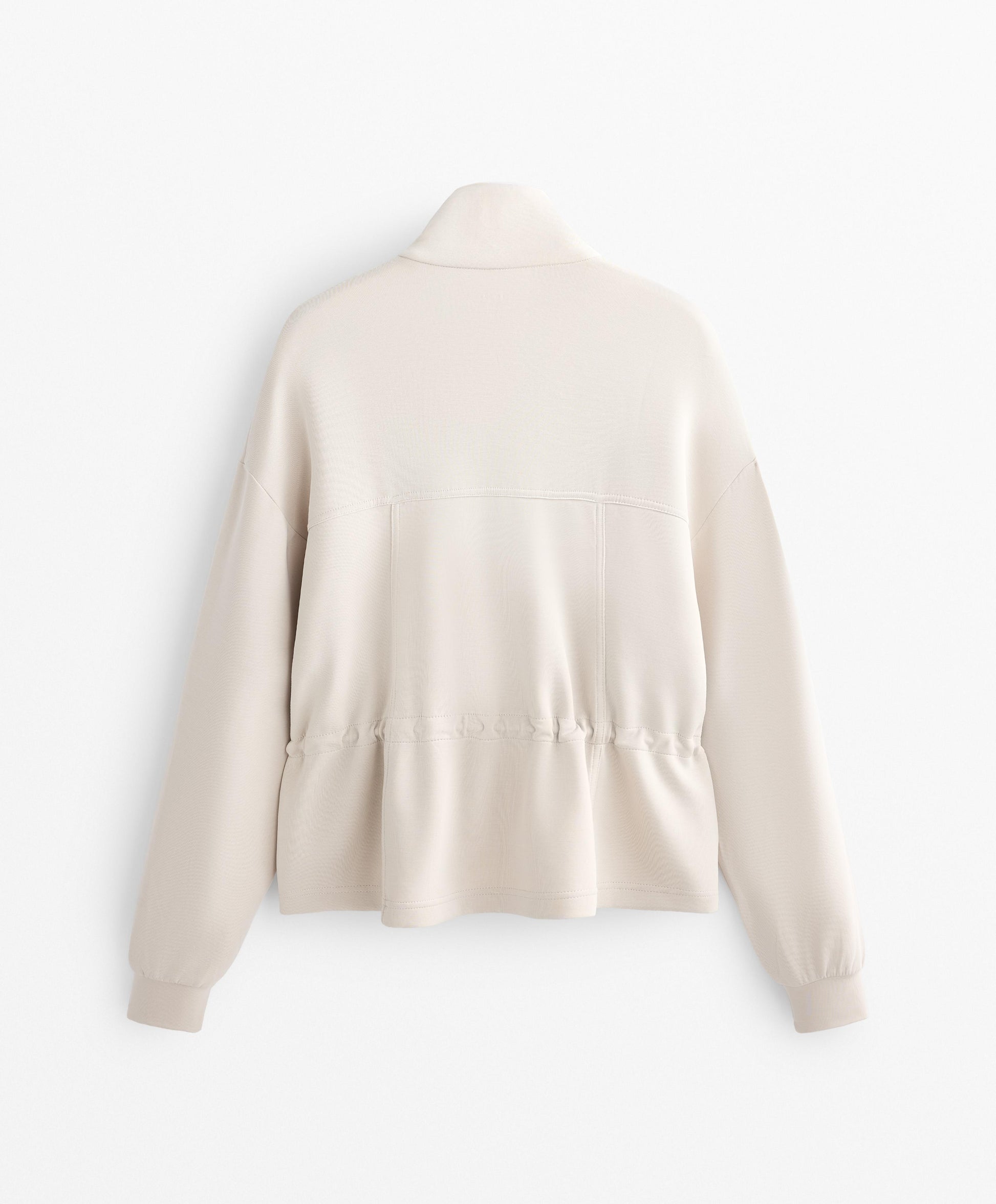 Ref. 3813/791/771 Jacket with a high neck and front zip fastening. Adjustable drawstring waist. Breathable fabric made with soft-touch modal.Materials and care instructions