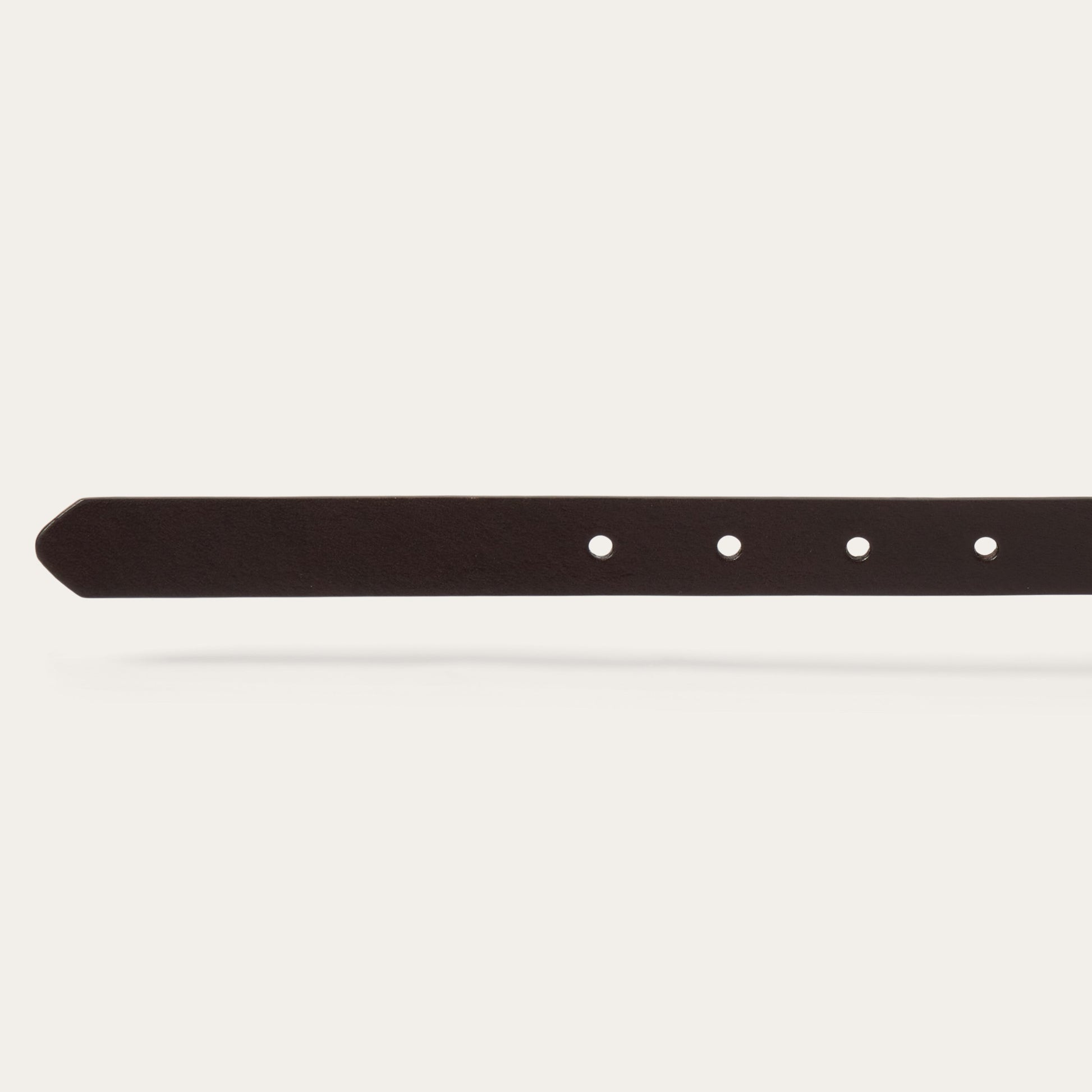 Made from top grain leather, this Southwestern concho belt has a 3/4" wide dark brown leather strap with silver-tone slider conchos and two-tone logo conchos. It features five holes on the point end to ensure a proper fit for all body types and is finished with an oval plaque silver-tone buckle. Our belts embody our legendary commitment to quality and make the perfect complement to your favorite hat and boots.