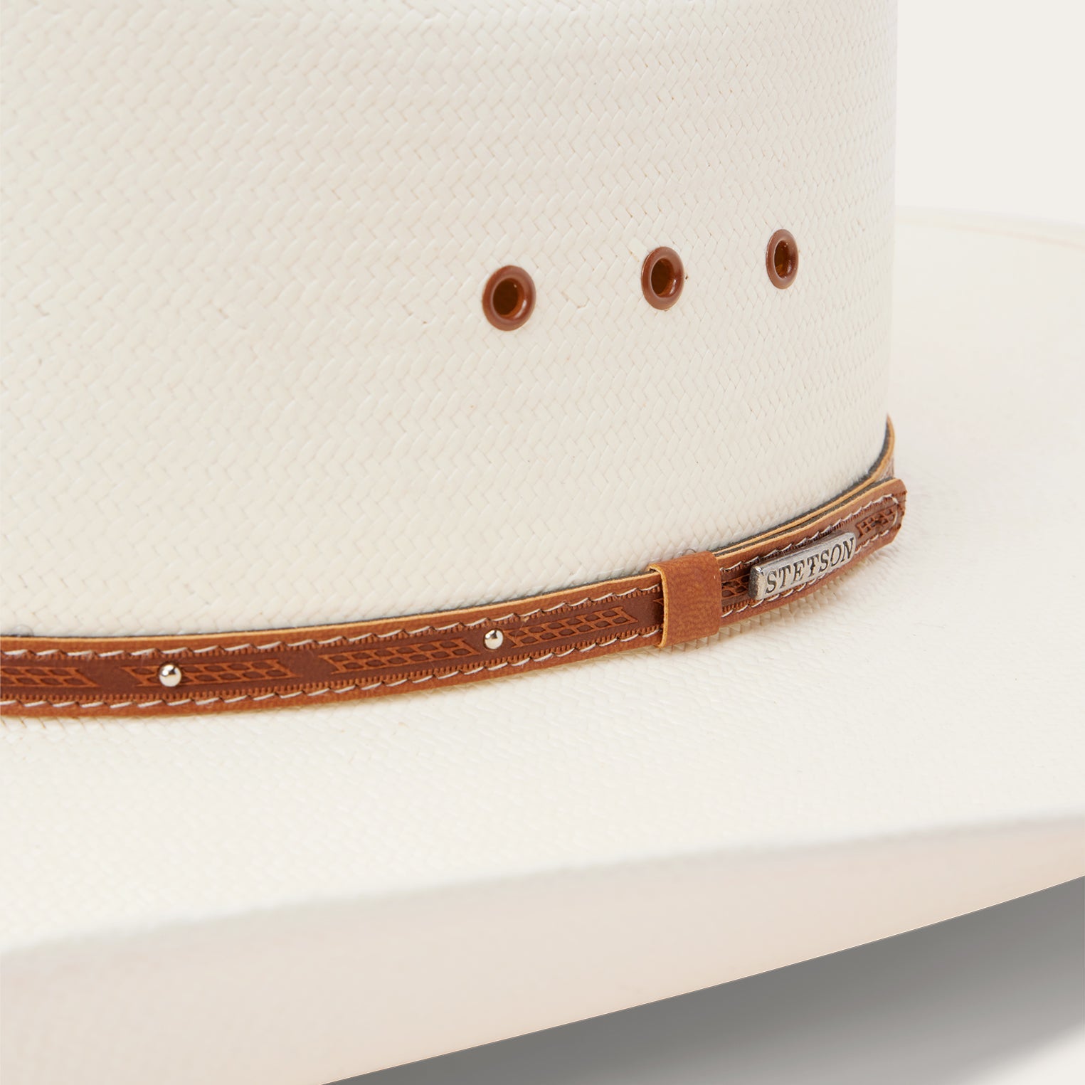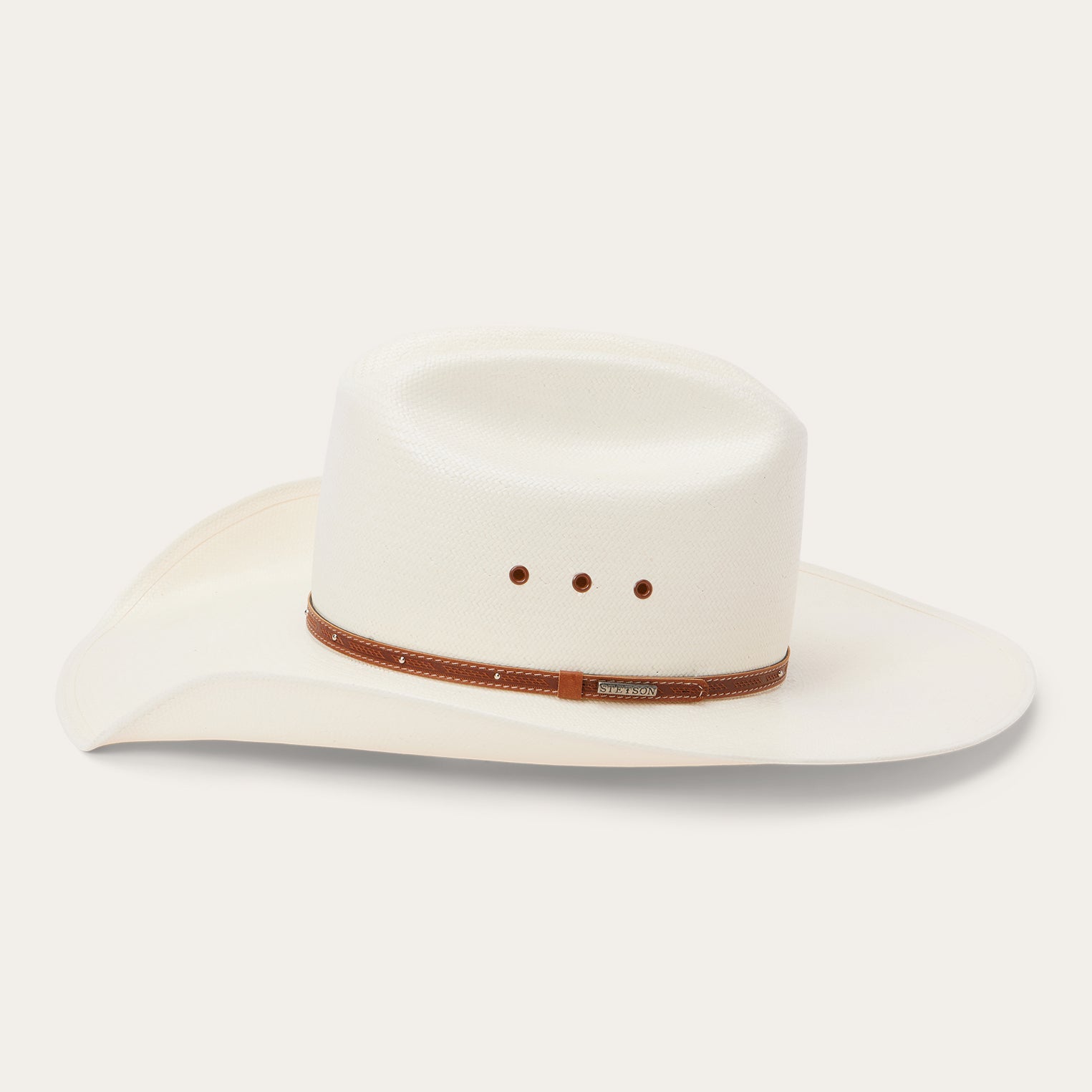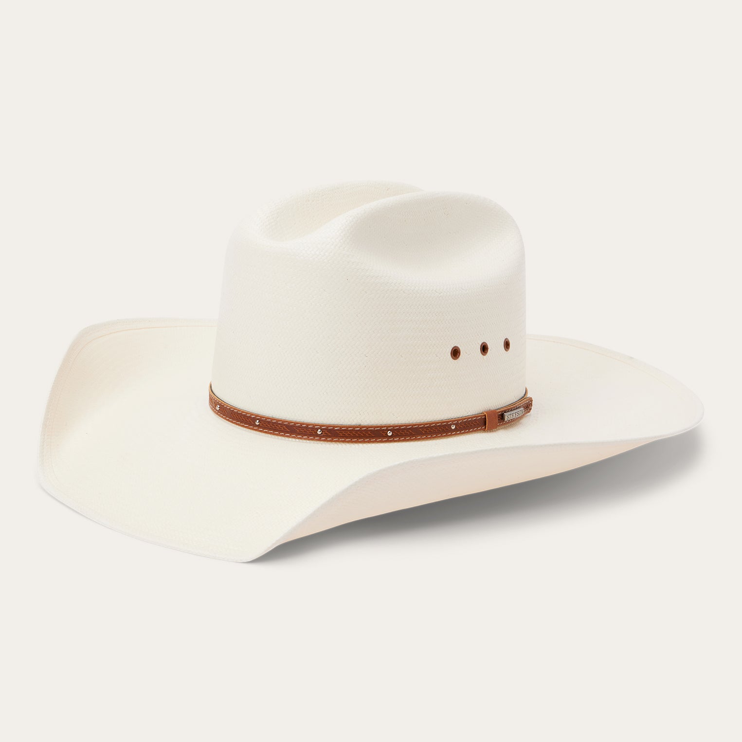 Handmade in the USA, the Stanhope 10X Straw Cowboy Hat has a 4 1/4" brim and a 4 1/8" regular oval crown with cattleman's crease and eyelets for increased circulation and breathability. Its rugged Western style is enhanced by a studded leather hat band and an absorbent DRI-LEX? sweatband ensures premium coolness and comfort all day long.