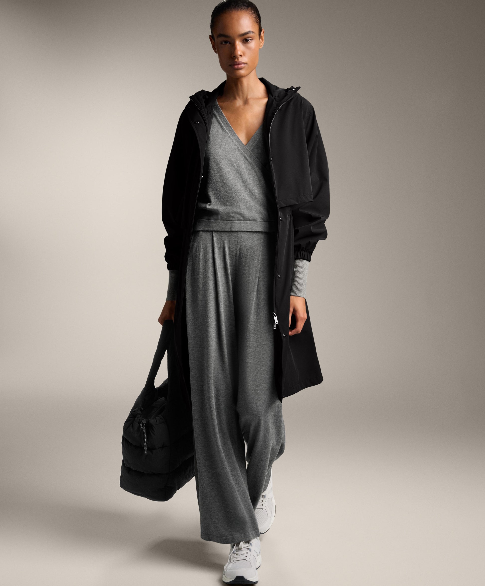 Ref. 4006/770/812 Wide, straight-leg knit trousers with adjustable elasticated waistband. Rib detail on the waist.Materials and care instructions