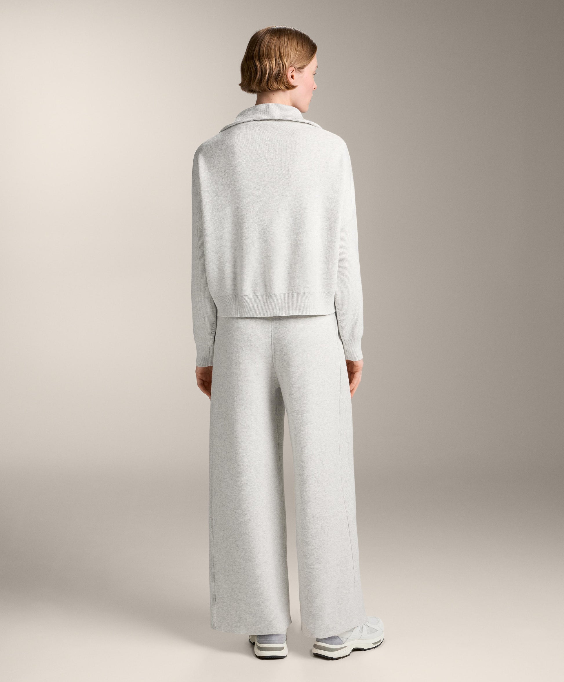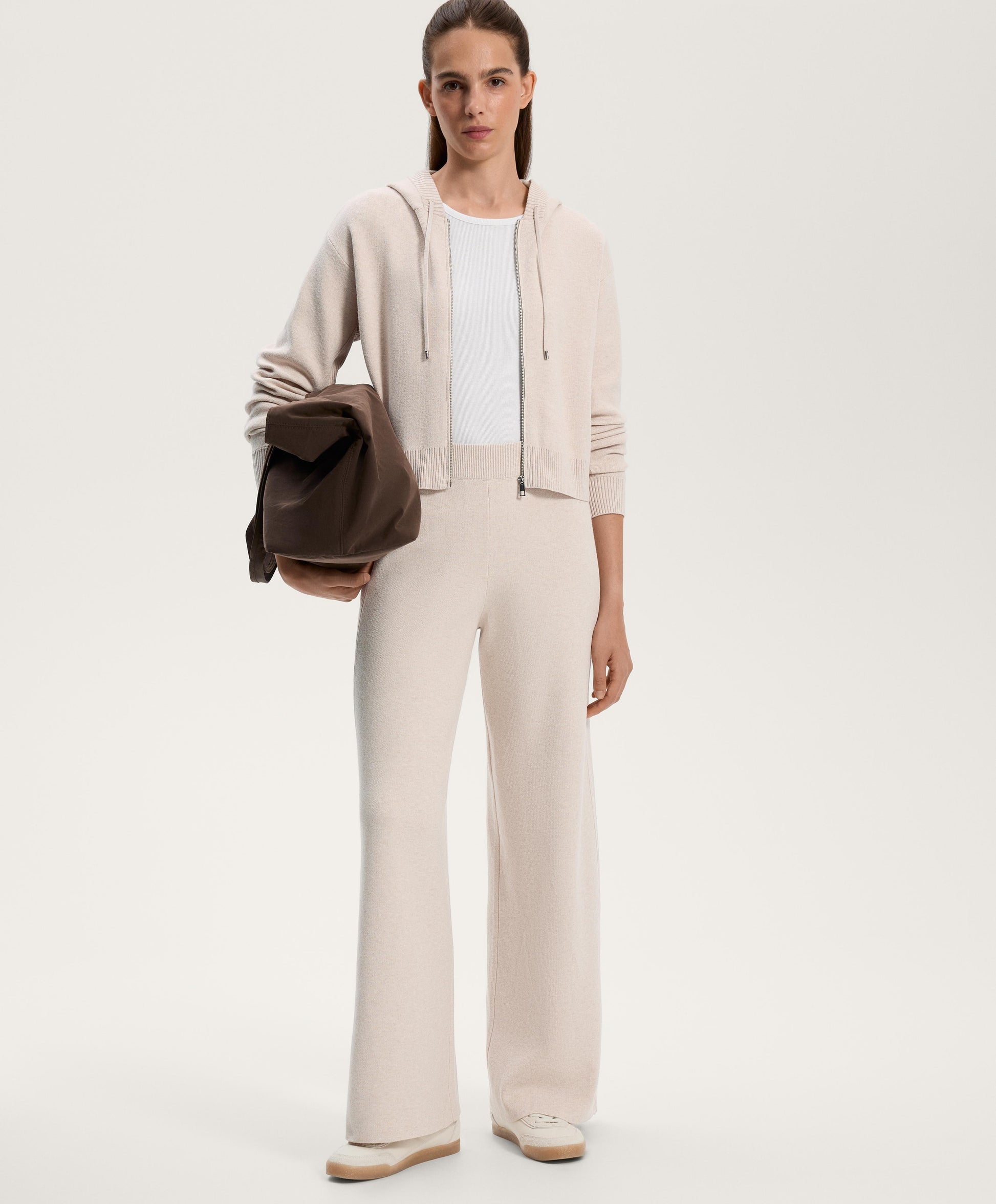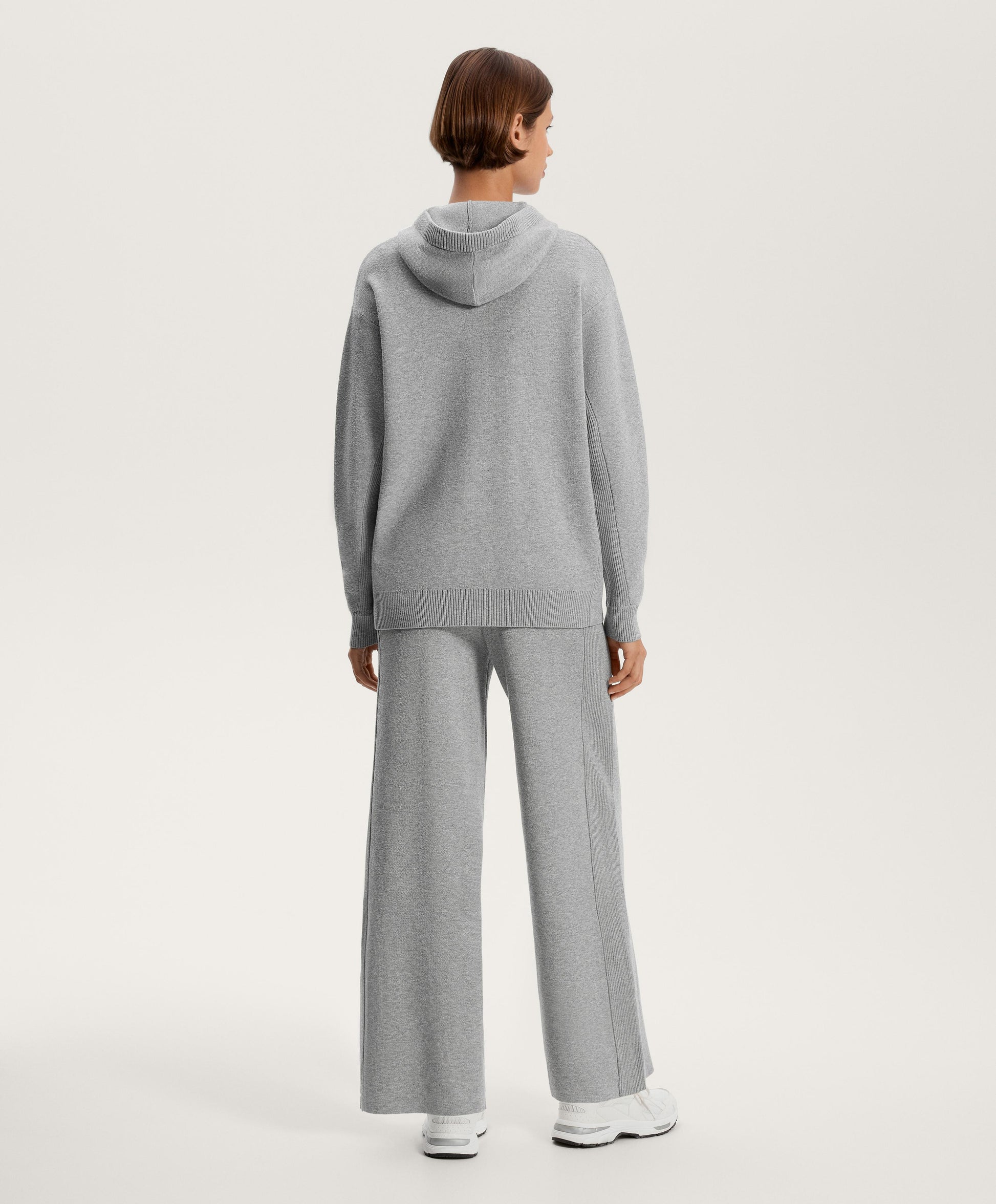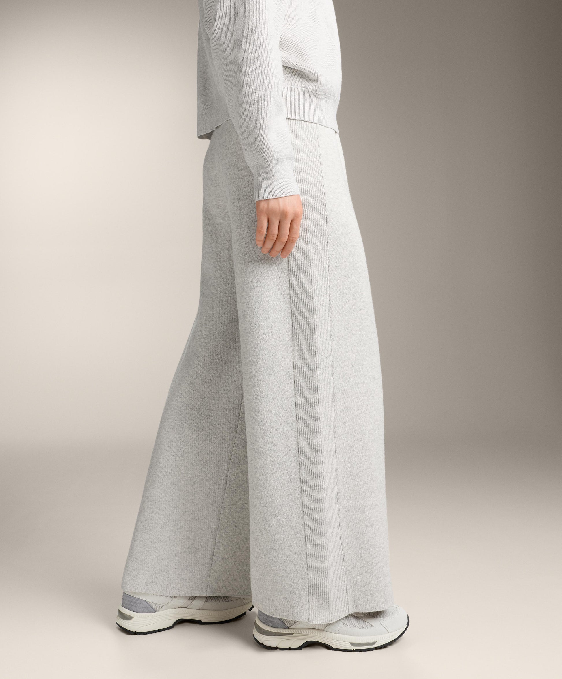 Ref. 3381/880/837 Wide, straight-leg trousers with adjustable elasticated waistband. Knit fabric with rib details on the sides.Materials and care instructions