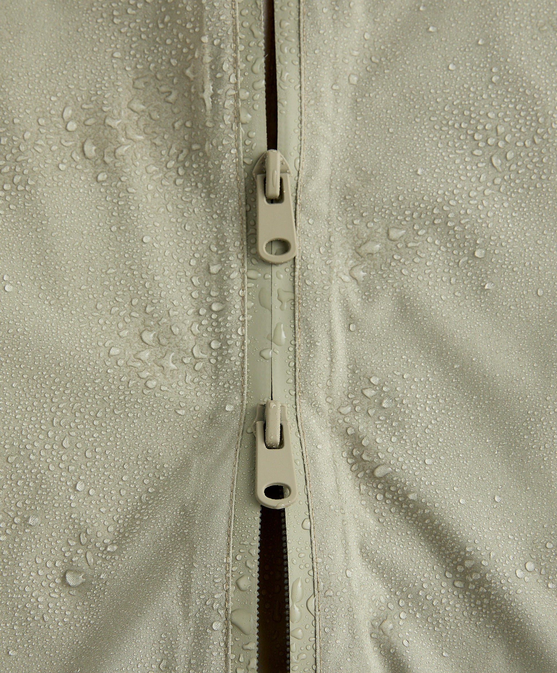 Ref. 3012/945/506 Packable waterproof jacket. Featuring a front zip fastening with a two-way zip puller, high neck and adjustable hood. Side pockets with press stud fastening. Adjustable cuffs with buttons.The fabric can withstand water penetration of ¡Ý10k (10,000 mm of pressurised water penetration). The garment is made with sealed (critical or complete) seams and airtight zips that offer enhanced waterproofing.