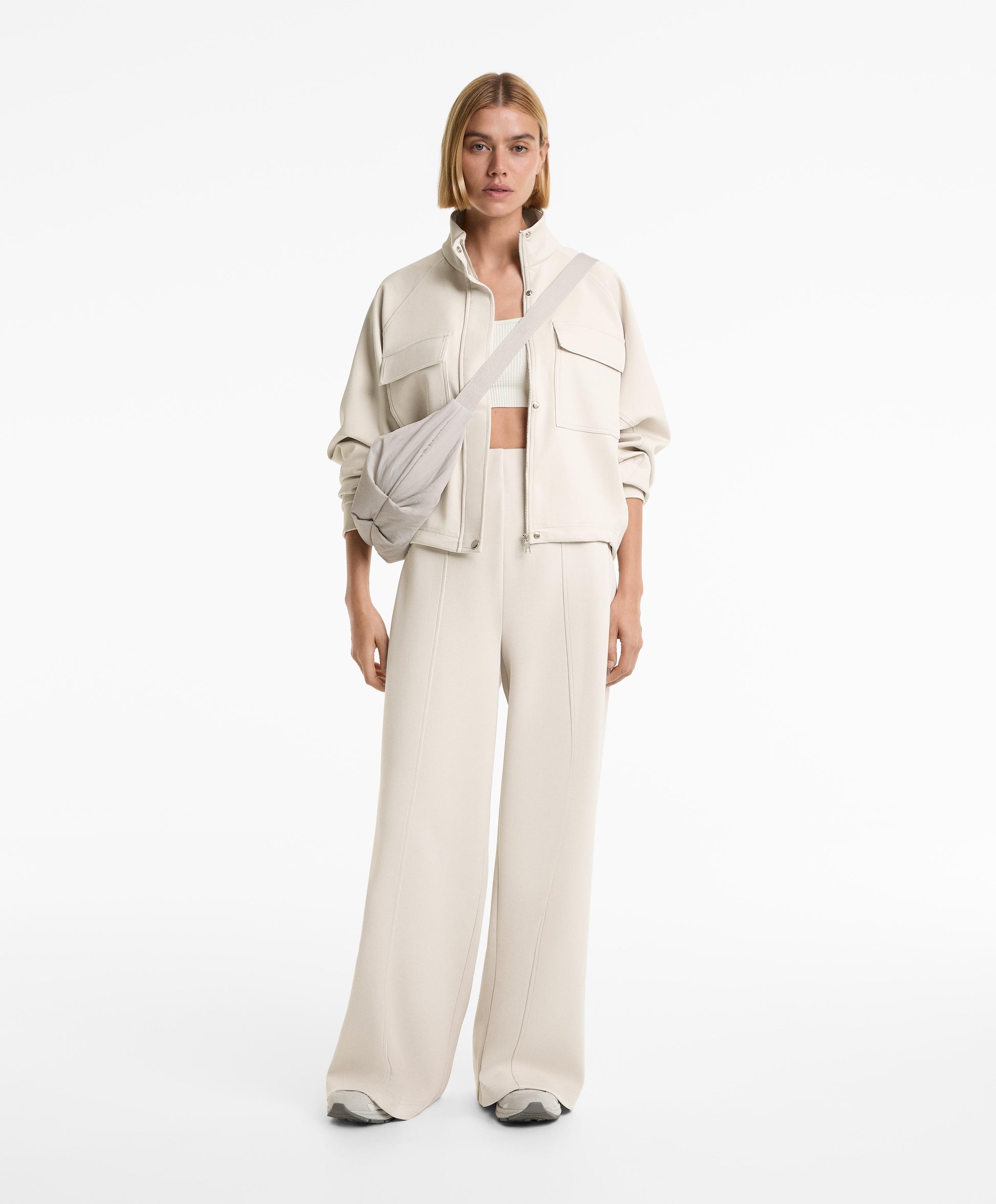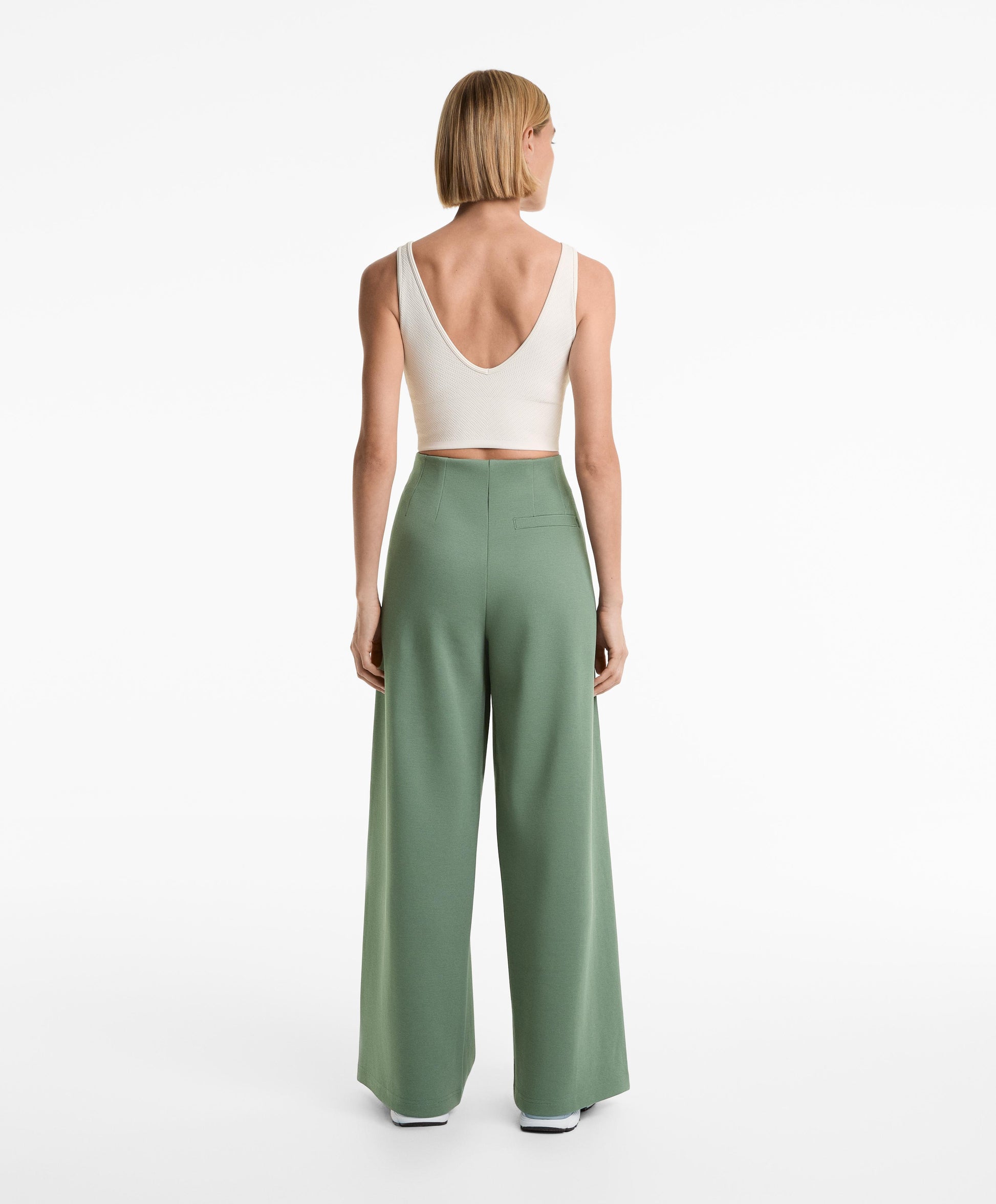 Ref. 3376/732/597 Wide leg, super high rise long trousers. Featuring an adjustable elasticated waistband and front pockets. Piqu¨¦ fabric made with cotton.Materials and care instructions