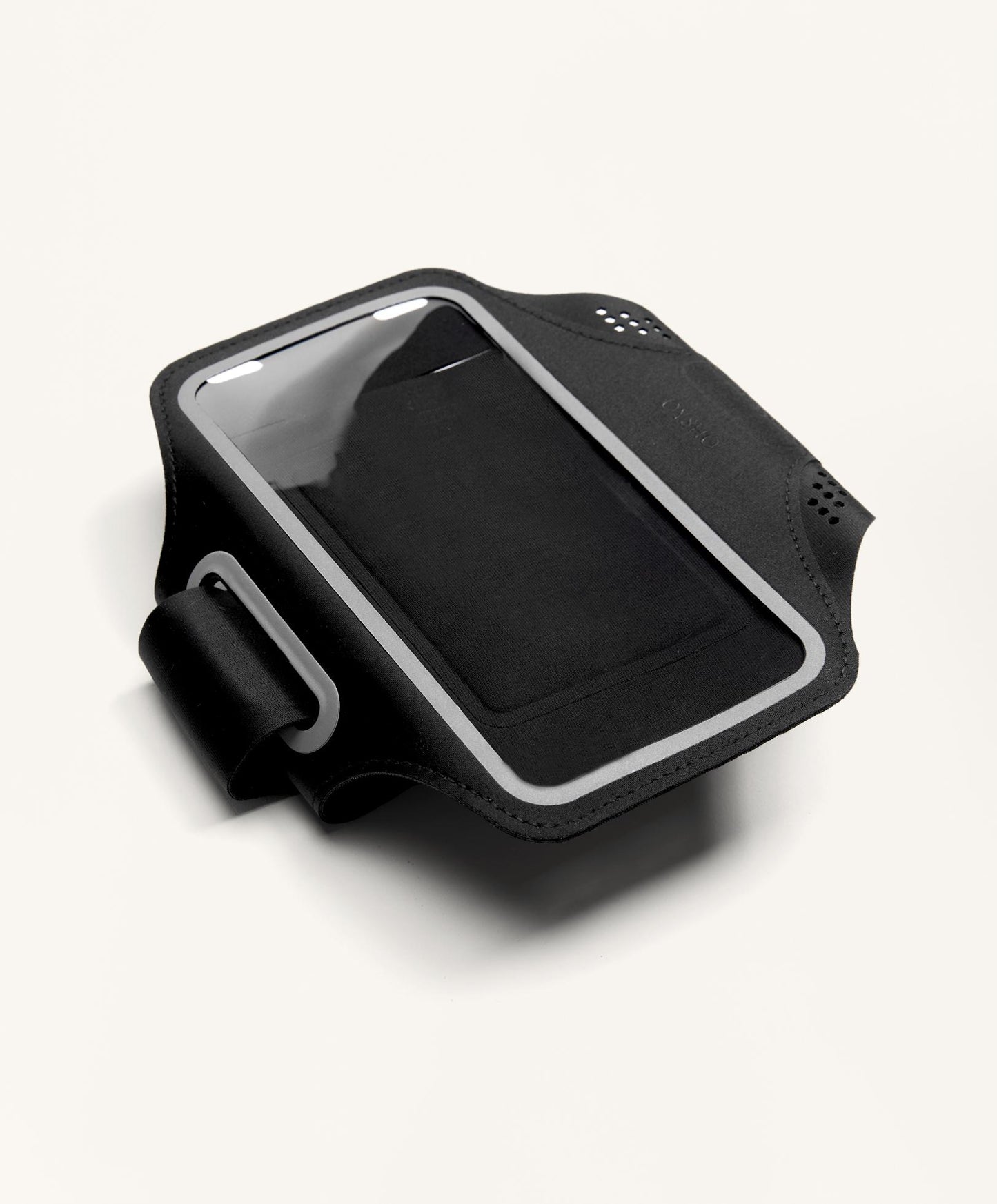 Ref. 4135/580/040 Adjustable touchscreen armband phone holder designed for runners. The inside features a card compartment. With reflective details for night-time Running. Measurements: 9.5x17x2 cm.Materials and care instructions