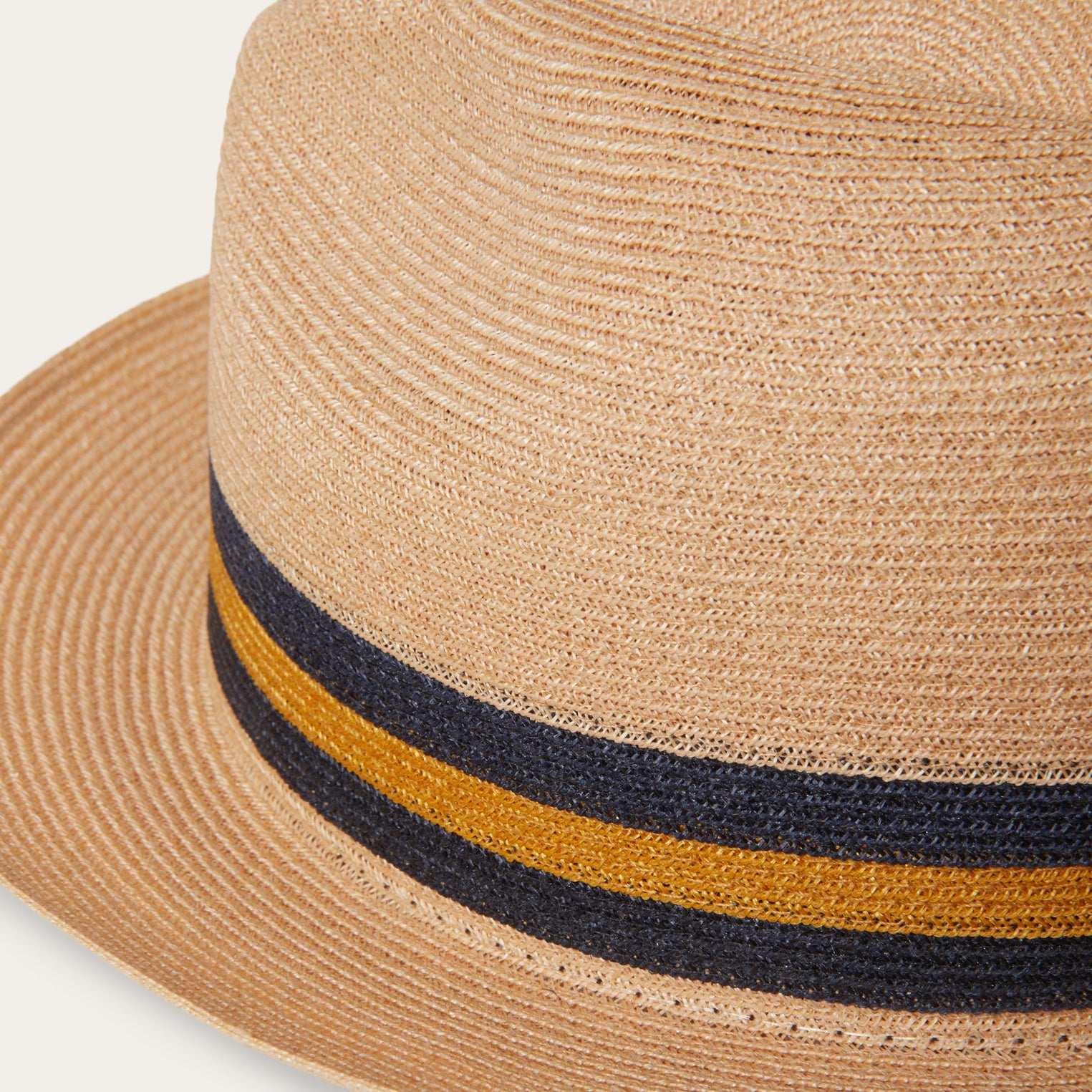This small-brim hat exudes classic style, and is equally at home downtown or at the beach. It's made with lightweight hemp, and a rakish two-toned striped hat band. At the interior, a Dri-Lex sweatband keeps you cool and dry.