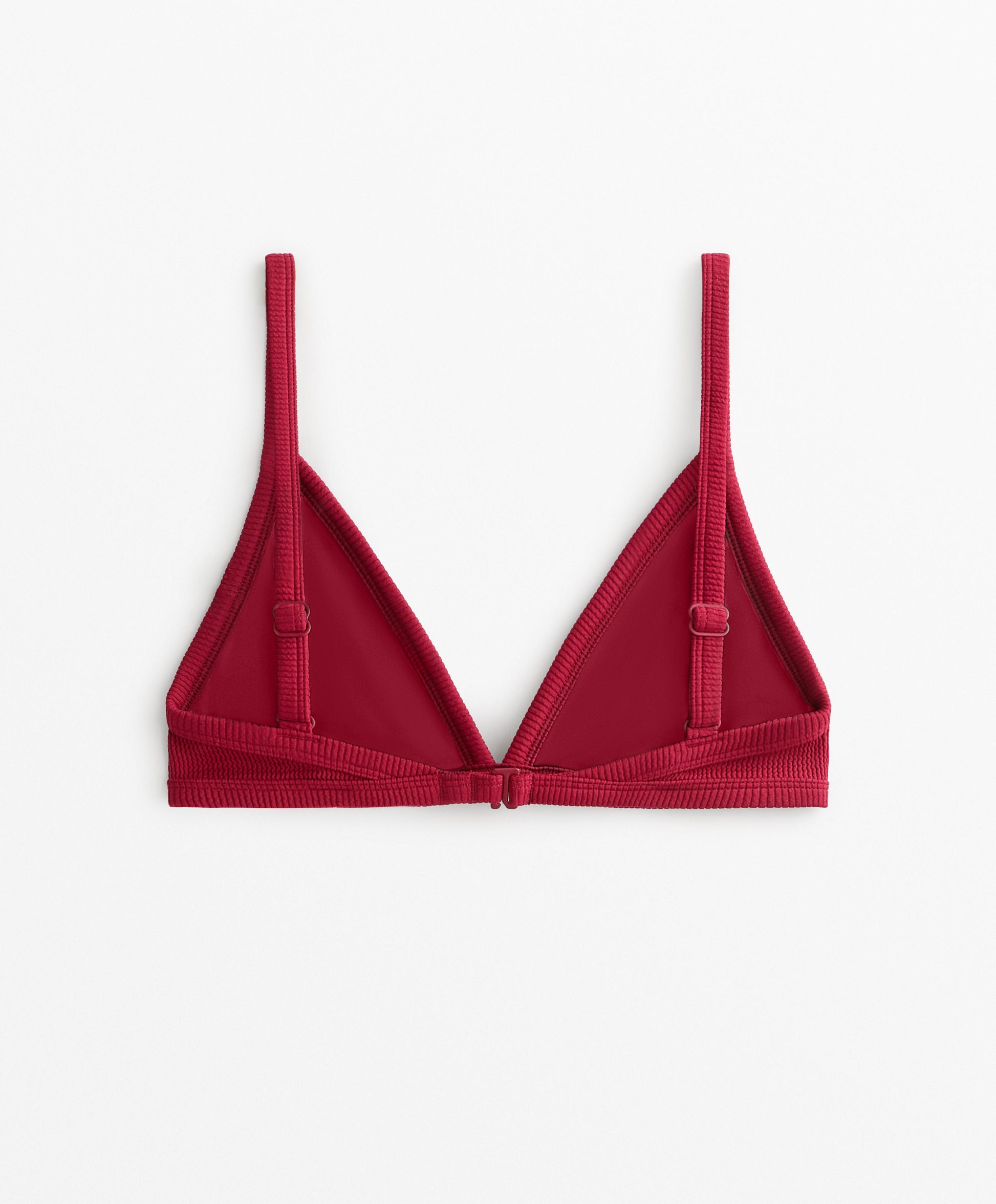 Ref. 0712/547/671 Triangle bikini top in ribbed fabric with contrast trims. Removable, non-wired cups. Adjustable straps and back closure.Materials and care instructions
