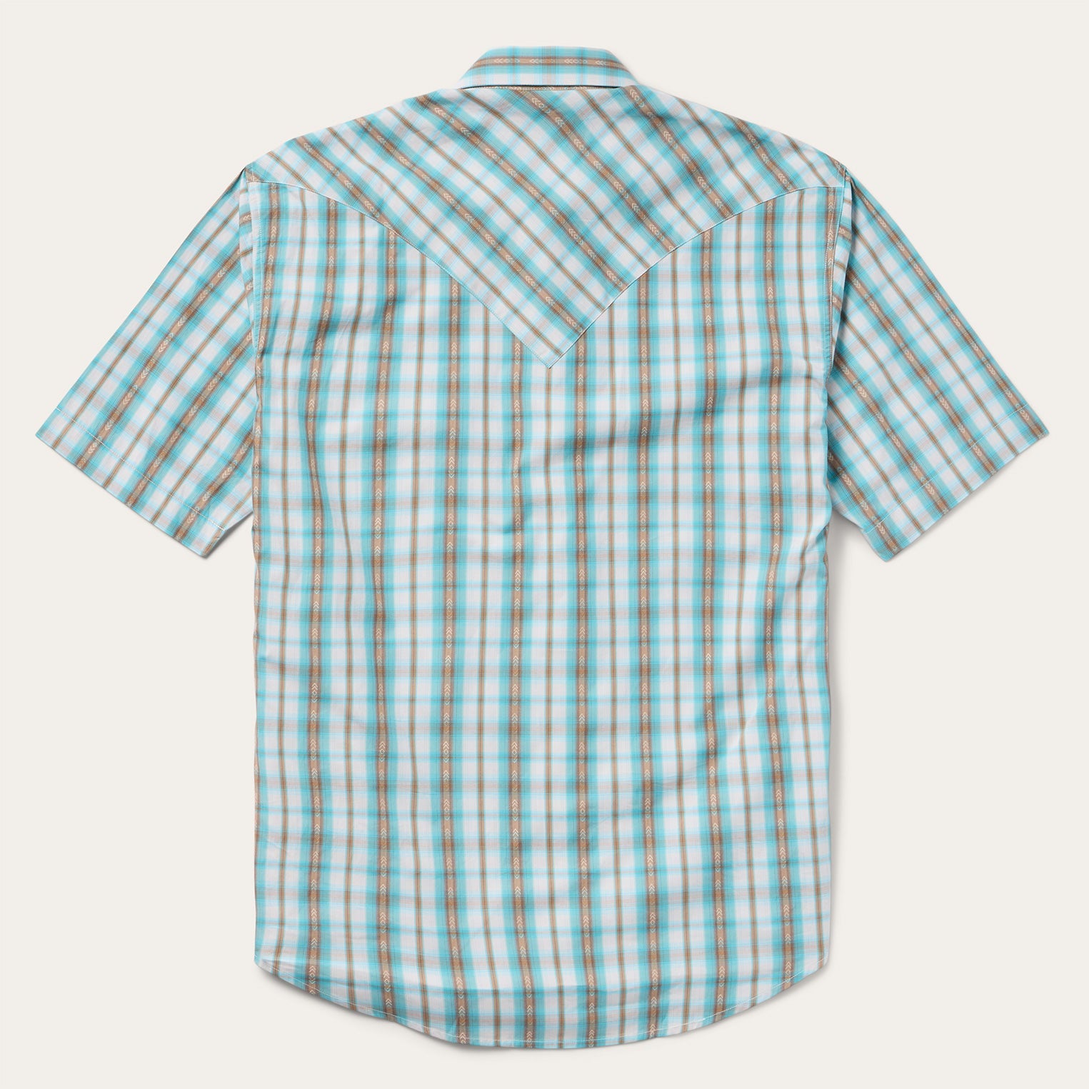Turquoise Plaid ShortSleeve Western Shirt Men