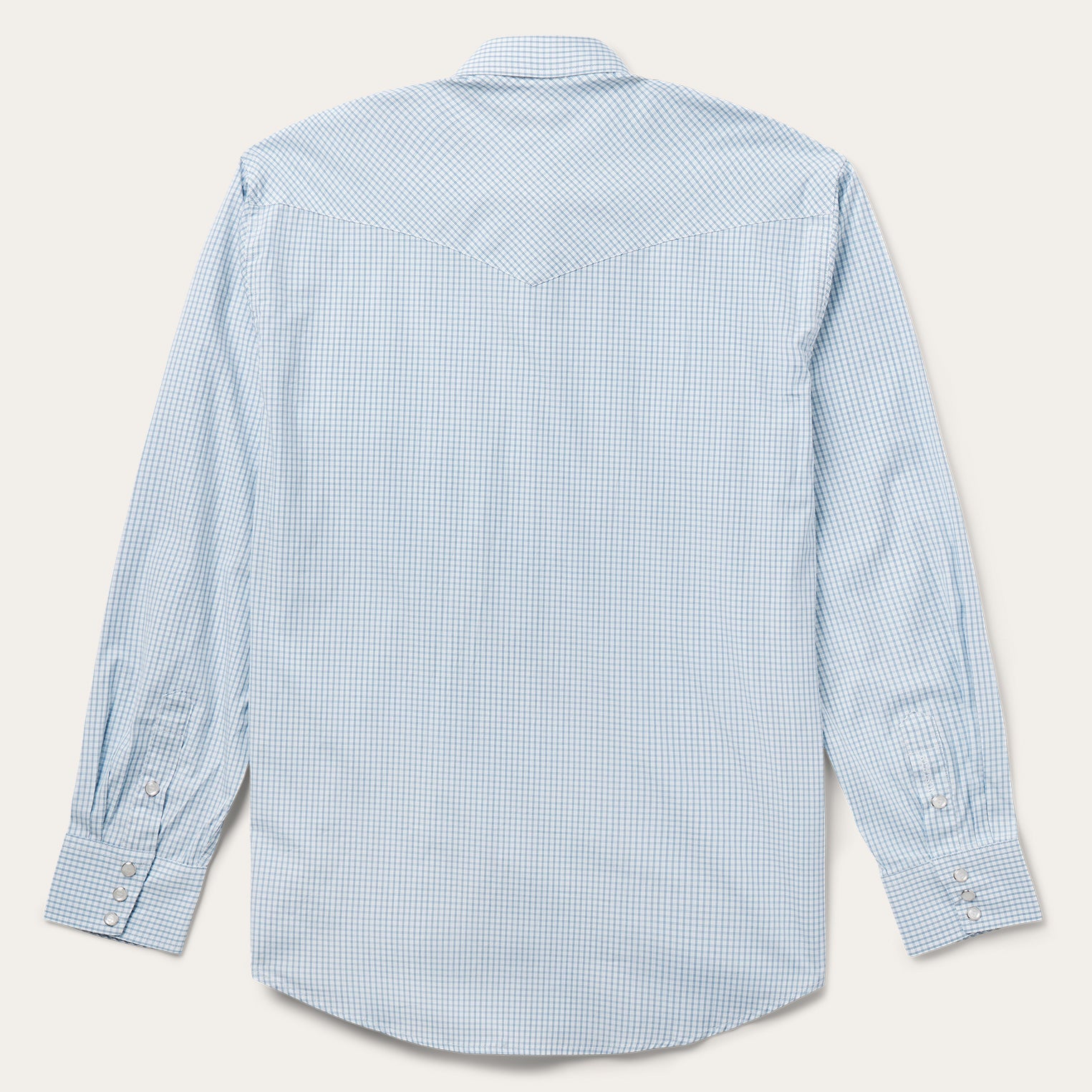 This classic snap-front Western shirt is crafted from 100% cotton that is made to get better with time and wear. Yarn-dyed for rich, lasting color, it features a two stripe check plaid and classic Western-style details including two one-point snap-closure pockets, a spread collar, one-point front and back yokes, pearl logo snaps and subtle tonal embroidery on the left chest pocket and right cuff.