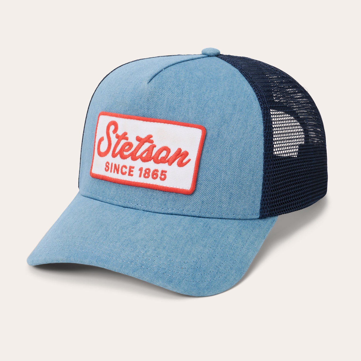 This rugged denim trucker cap honors over a century and half of It history and heritage. Crafted from sturdy 100% cotton, it has a traditional mesh back for breathability, a gently curved bill and an adjustable snapback closure for a secure, comfortable fit.