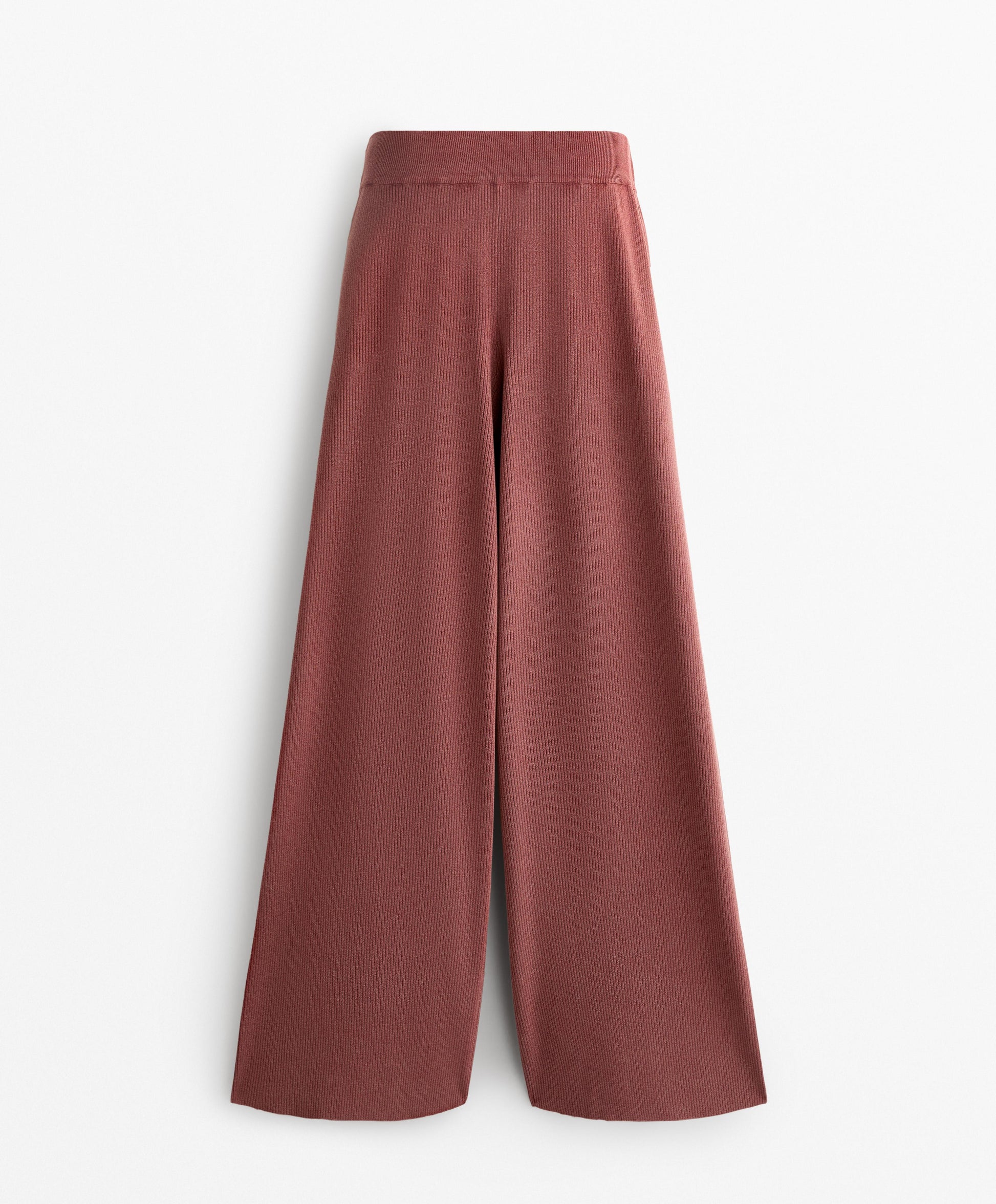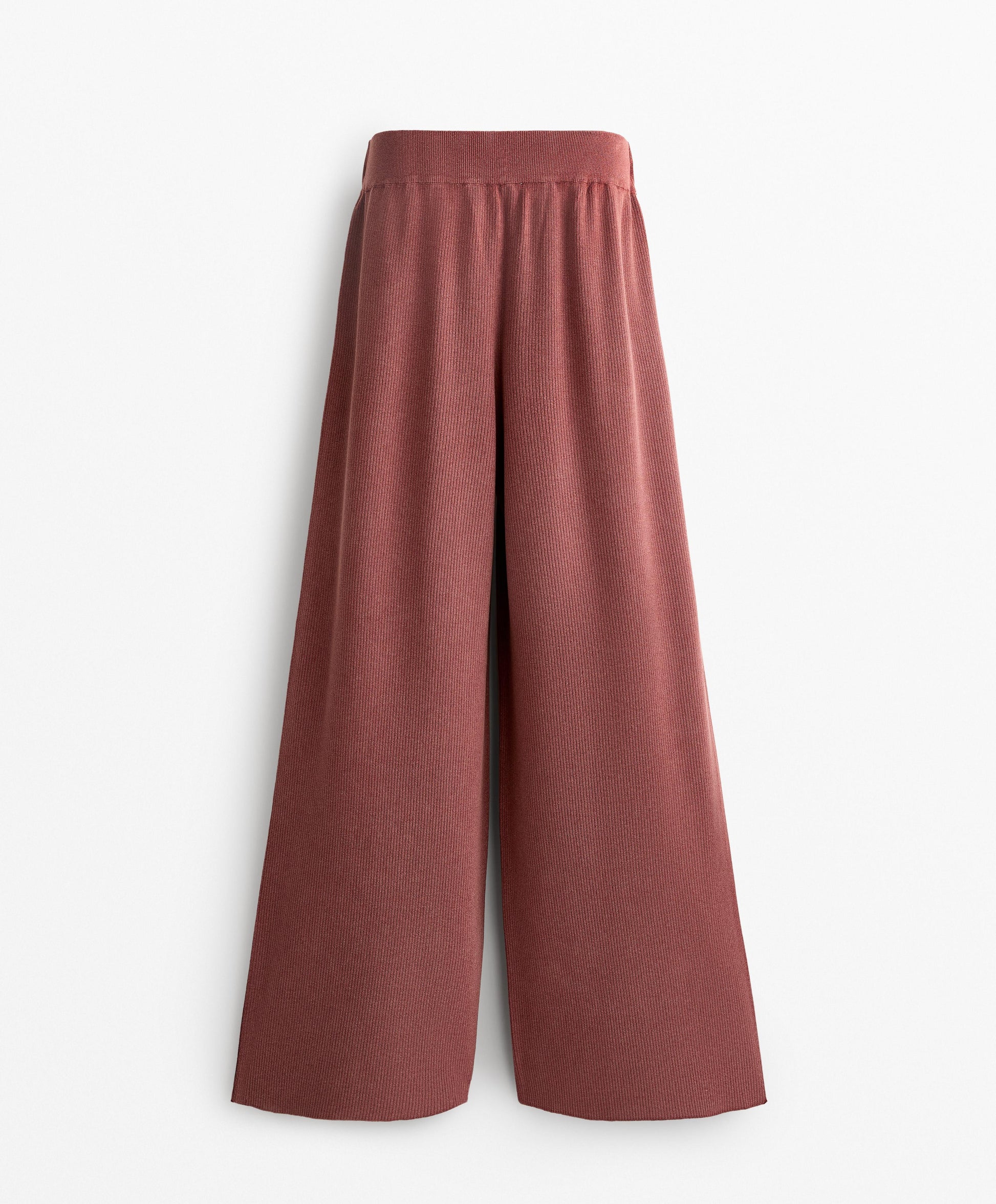 Ref. 3368/695/199 Wide, straight leg, long trousers with adjustable elasticated waistband. Washed knit fabric.Materials and care instructions